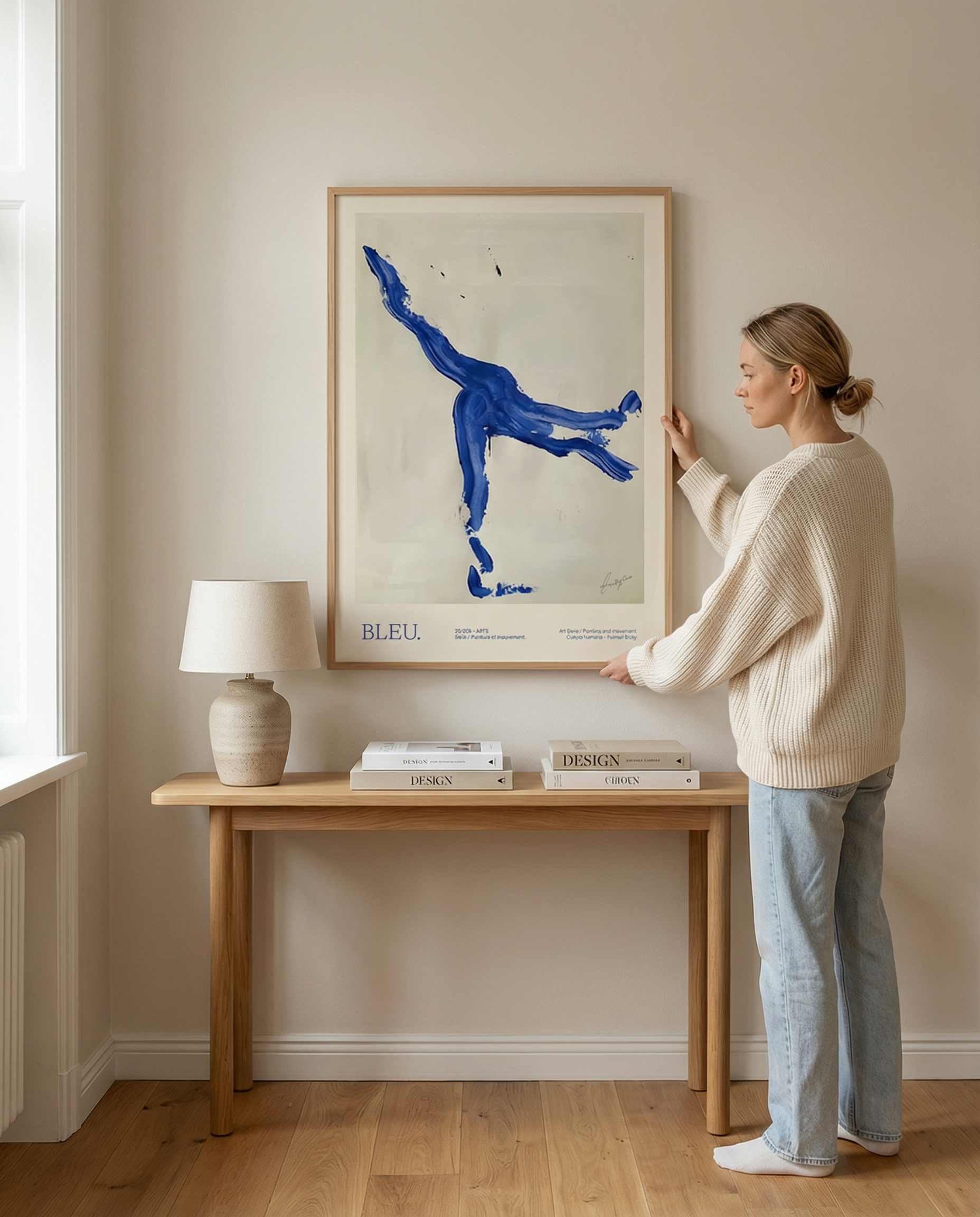 The poster is perfect for Scandinavian interiors, where its clear blue hues create a fresh and striking focal point. It can hang alone as an artistic statement or be combined with other posters in a gallery wall.