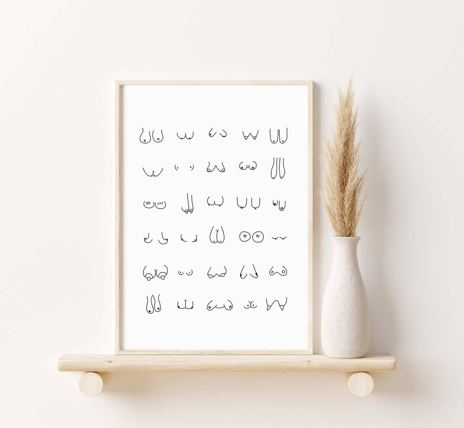 This Breast Shapes poster celebrates the female body in all its diversity. With simple, hand-drawn lines, the poster shows many different breast shapes – without filters, without ideals and without shame.