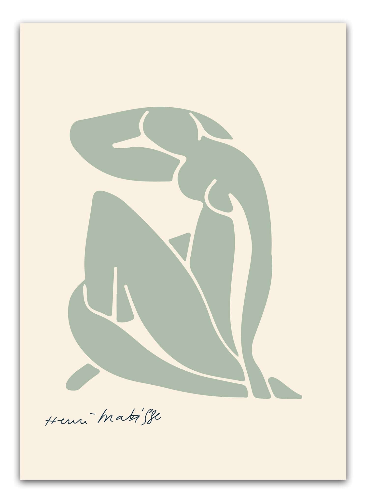 H. Madame – Matisse Poster is a calm and elegant art poster inspired by Henri Matisse's iconic line art and figurative motifs. The green silhouette of a woman creates a sense of nature, balance and strength – a work of art that adds a harmonious and artistic touch to the room.