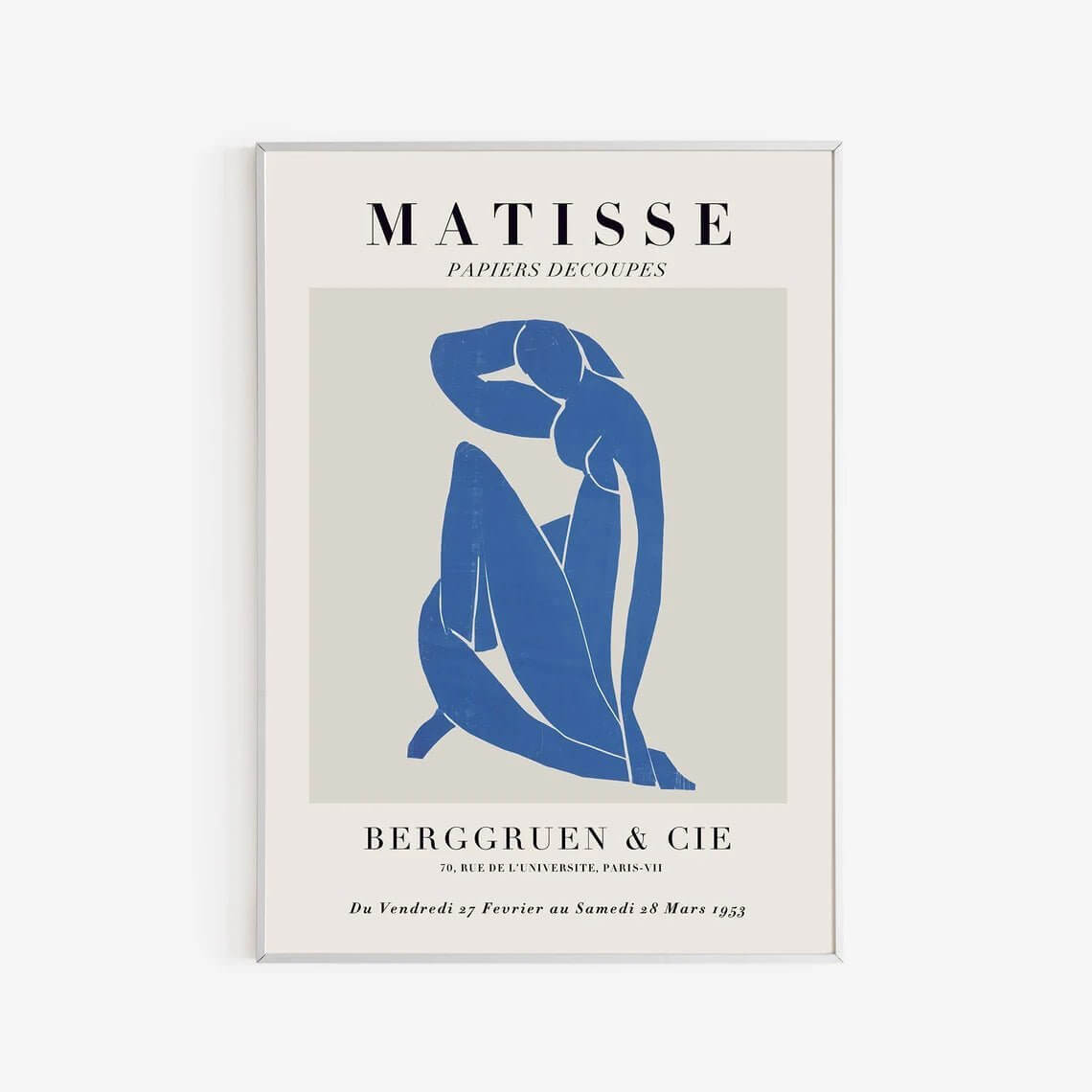 Bring classic modernism into your home with the Blue Women Figure - Matisse Poster . This iconic work by Henri Matisse is part of his famous "cut-out" period, where he created dynamic and organic shapes in intense colors. The deep blue hues and simple lines make this Matisse poster a timeless wall decoration that is perfect for both minimalist and artistic homes.