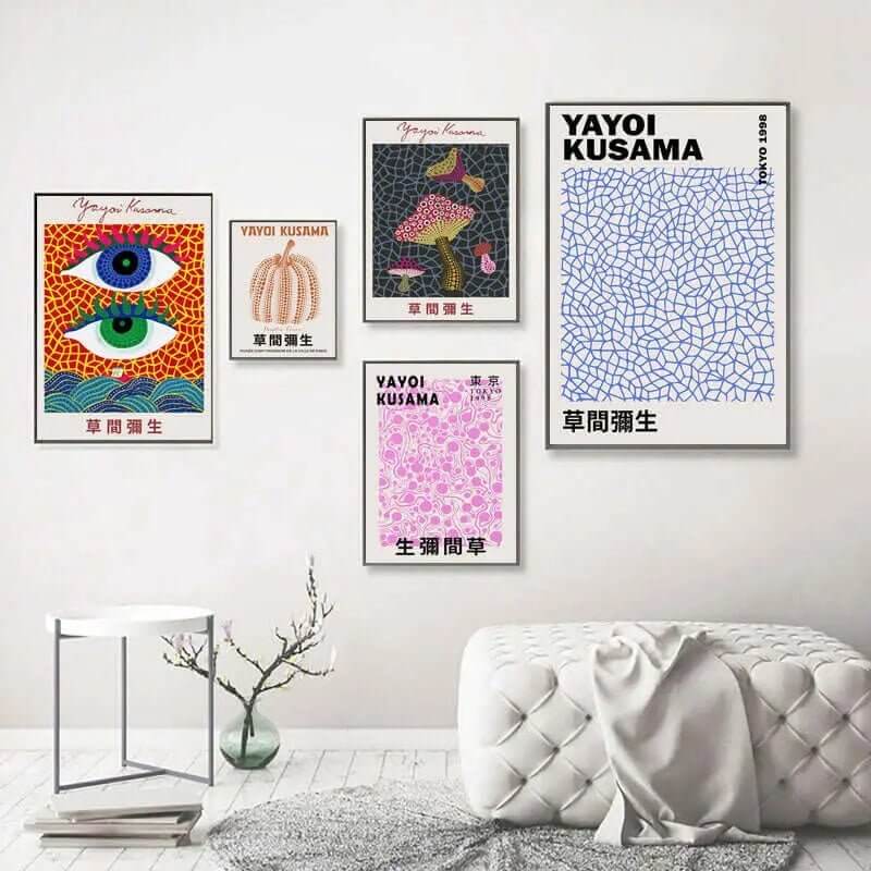 Explore the fascinating world of Japanese posters and the unique artwork of Yayoi Kusama. Our collection of Japanese posters offers a mix of traditional motifs and modern designs that capture the essence of Japanese aesthetics and culture. Discover Kusama's bold patterns and colorful polka dots that bring life and energy to any space. Give your home a touch of Japanese inspiration with our beautiful collection.
