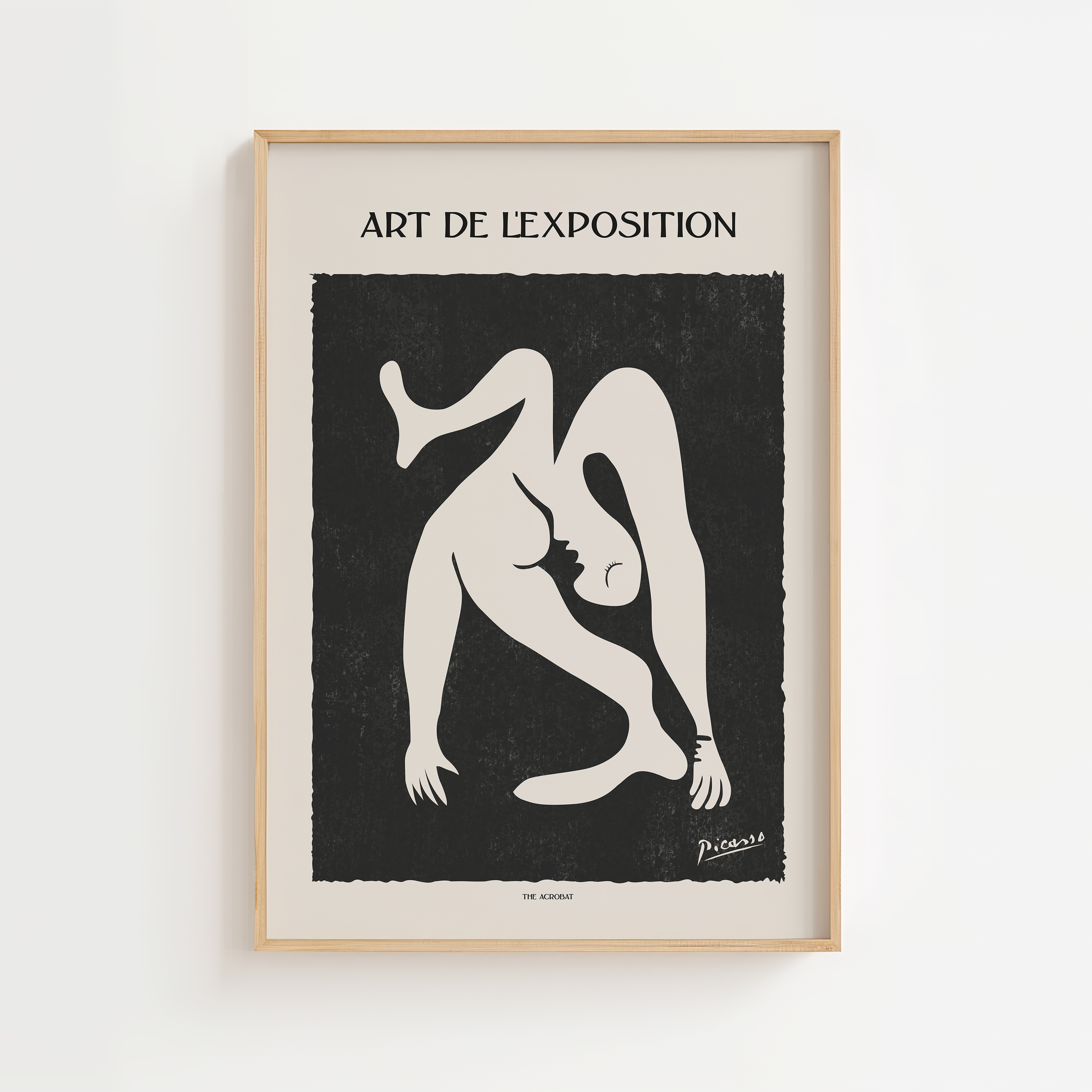 Acrobate – Picasso Poster is an expressive and modern black and white art poster depicting an acrobatic figure in Picasso's well-known line style. With its simple and powerful composition, the poster adds edge and elegance to any interior.