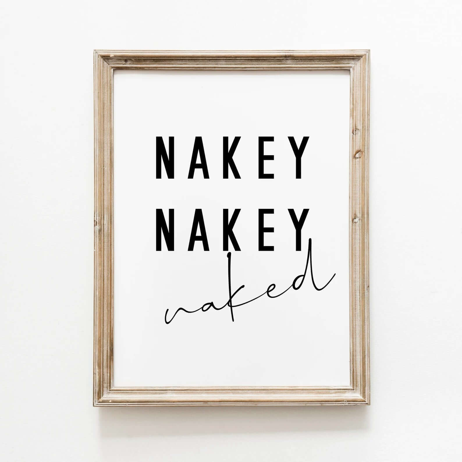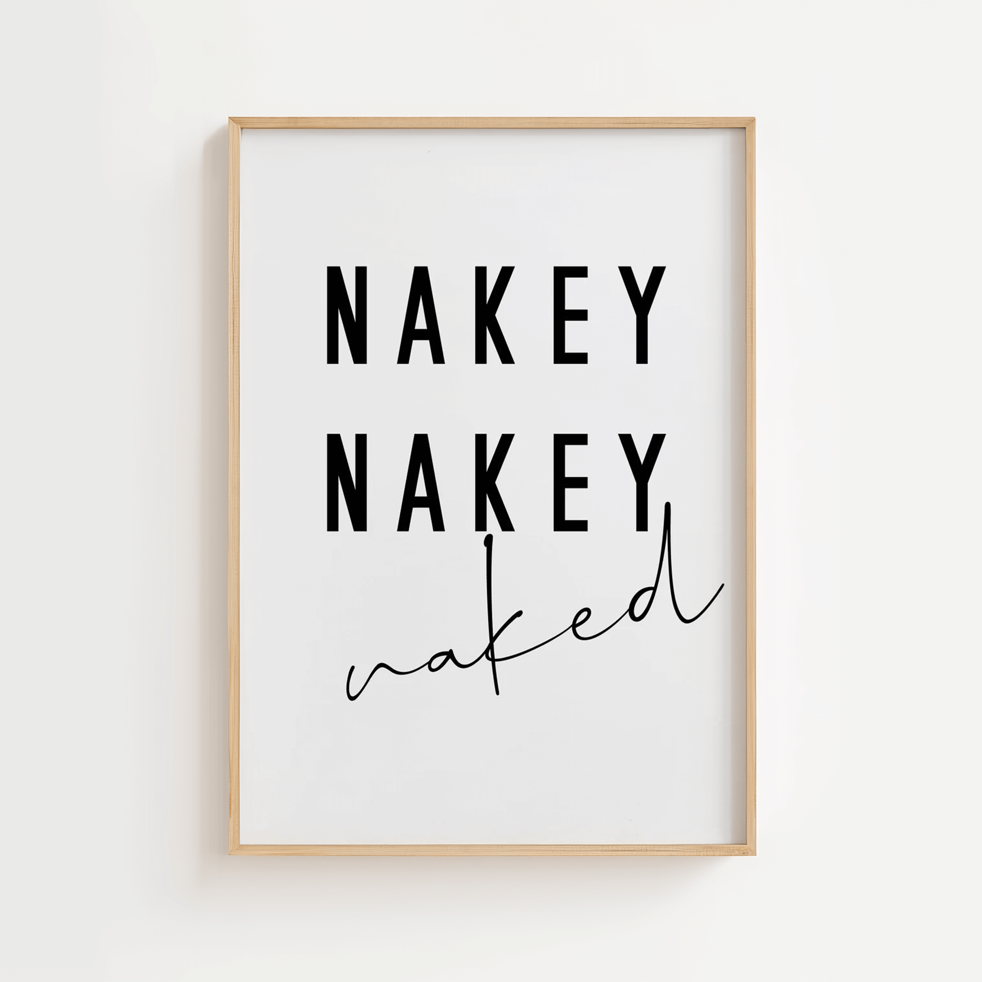 Bring smiles and charm to your bathroom with this simple and fun poster that reads “NAKEY NAKEY naked.” The playful typography in black and white fits perfectly with modern or minimalist decor and adds a touch of humor to your walls. A great gift idea or a cozy twist for the guest toilet.
