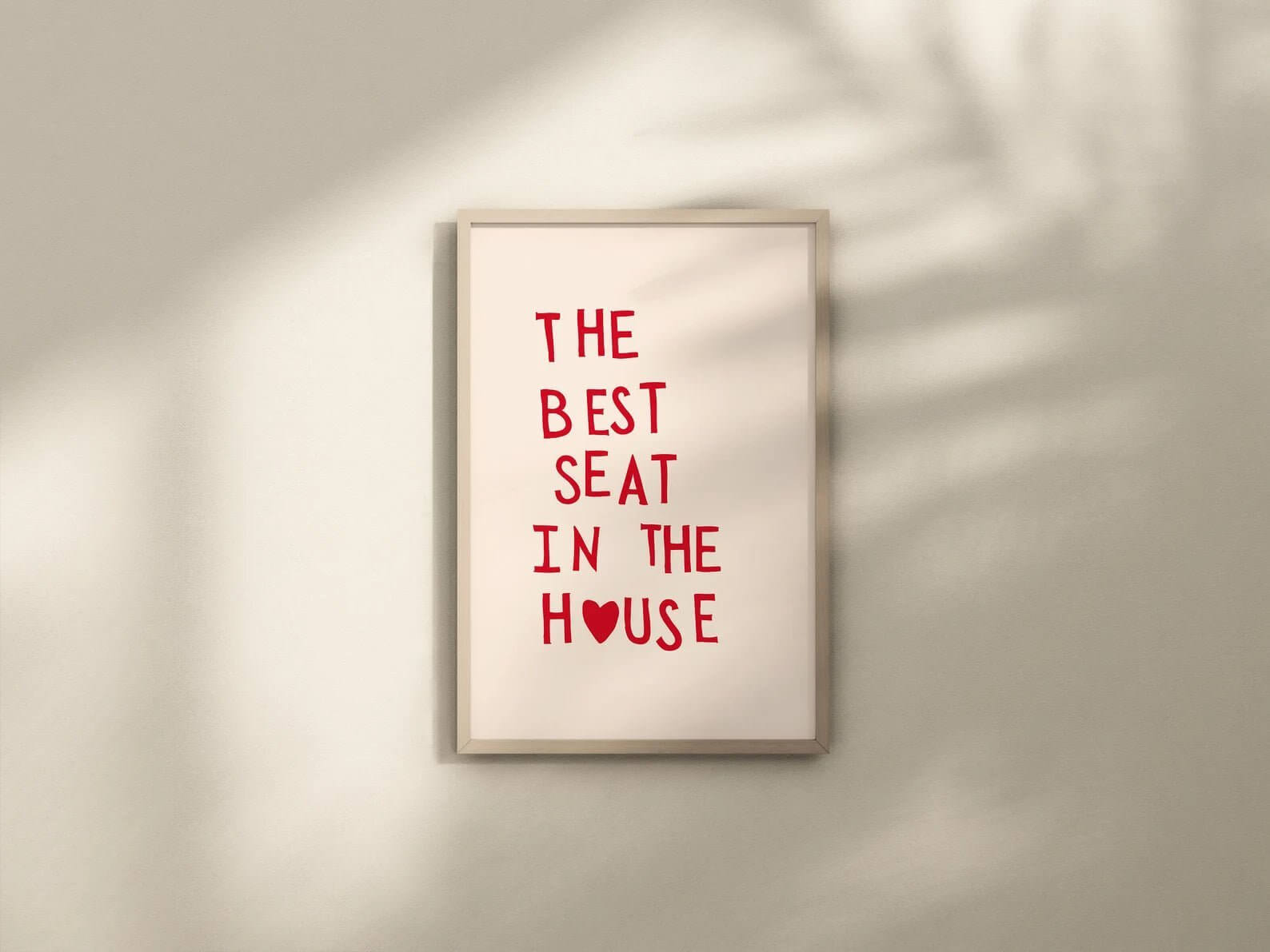 Make your bathroom a little more fun with this charming and humorous poster! “The Best Seat in the House” is adorned with playful red typography and a small heart, adding a touch of love to the otherwise practical decor. The poster fits perfectly in the guest toilet or as a fun element in a modern home. The simple, hand-drawn style and warm cream-colored background make it easy to match with any frame and decor.