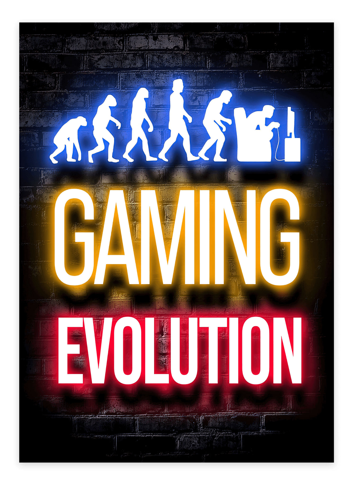 From retro consoles to modern e-sports – gaming has evolved enormously, and the Gaming Evolution - Gaming Poster celebrates it! This gamer poster shows the evolution of gaming over time, making it a perfect statement piece in any gaming setup.