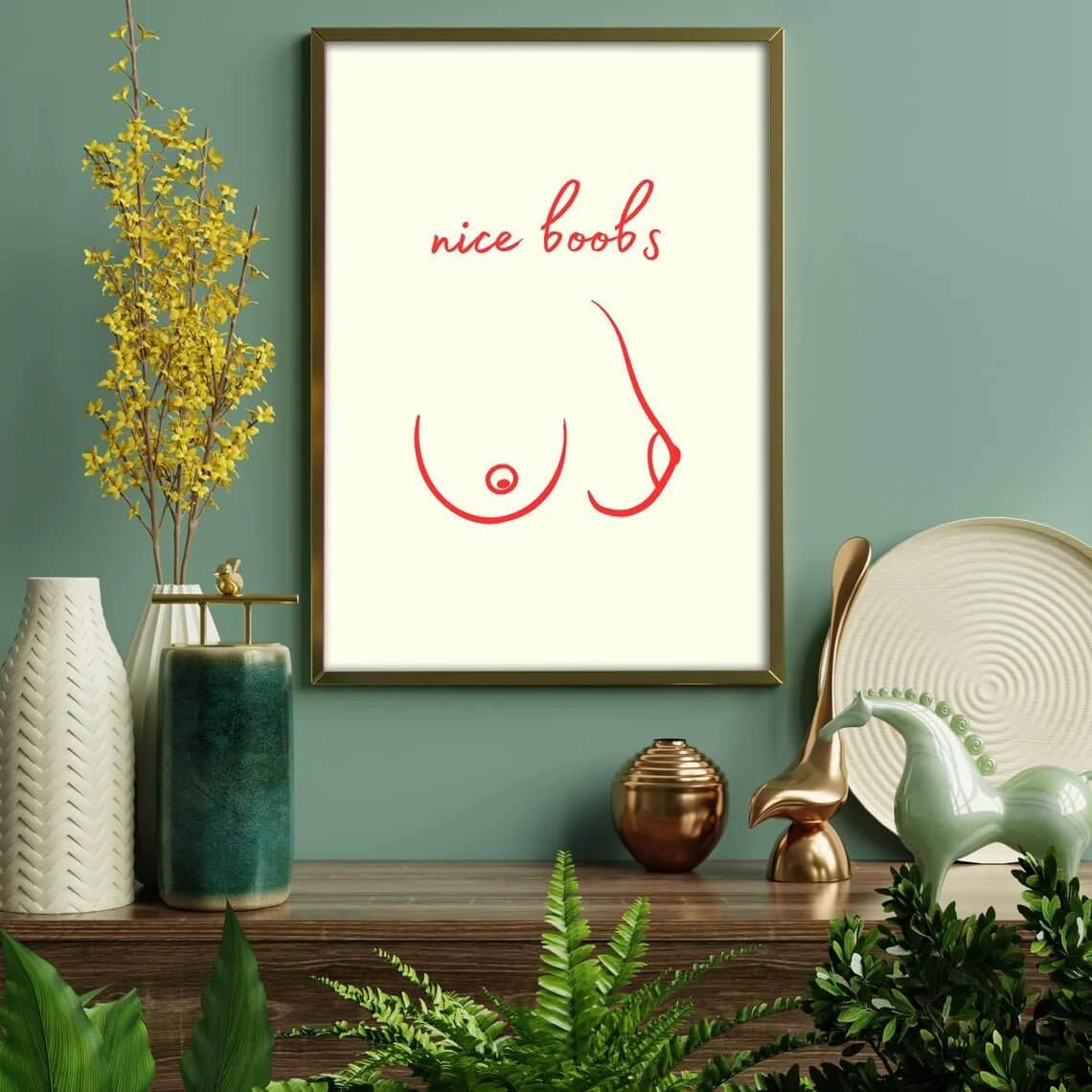The poster is available in several sizes so you can find the perfect fit for your decor. Order your Nice Boobs Poster today and give your walls an artistic twist