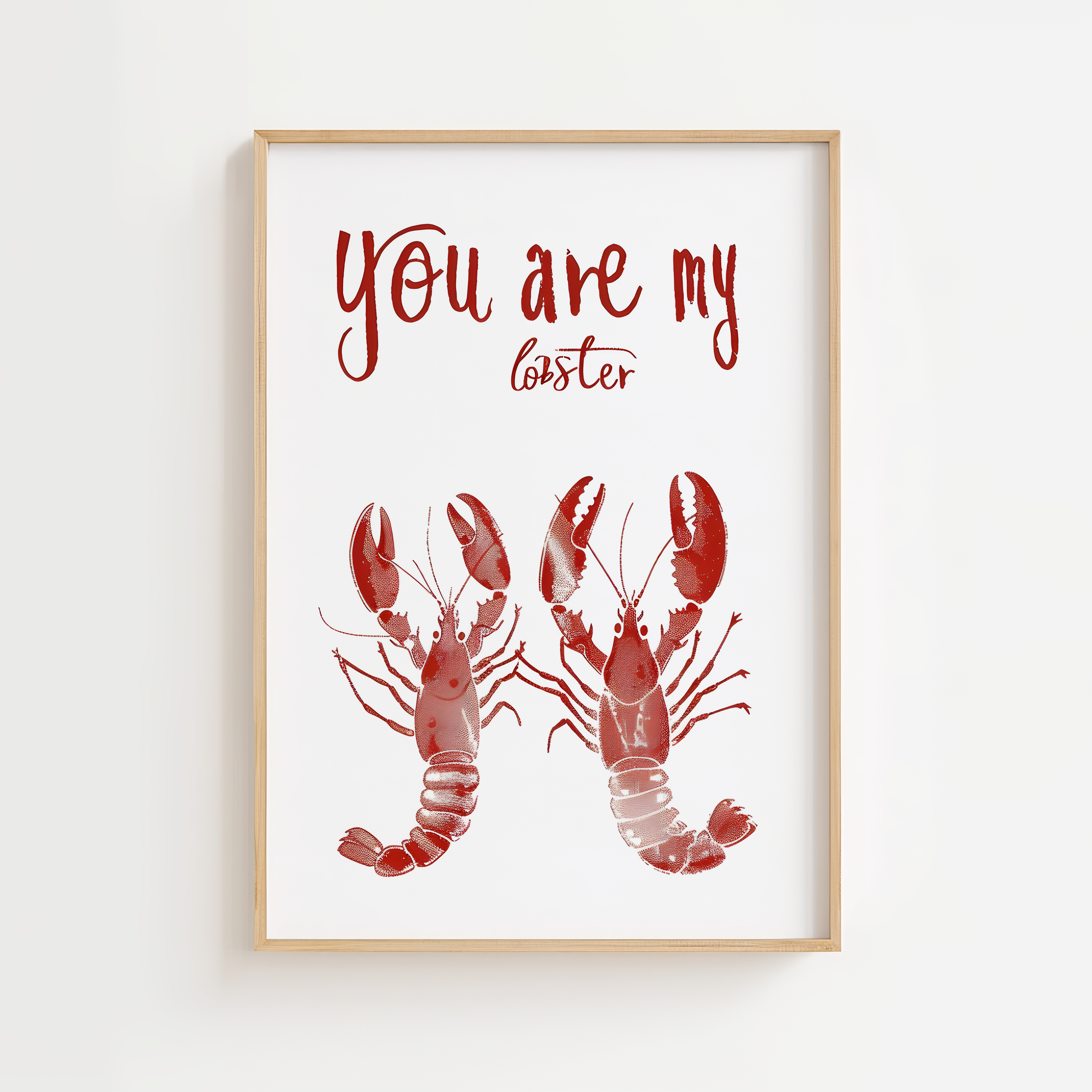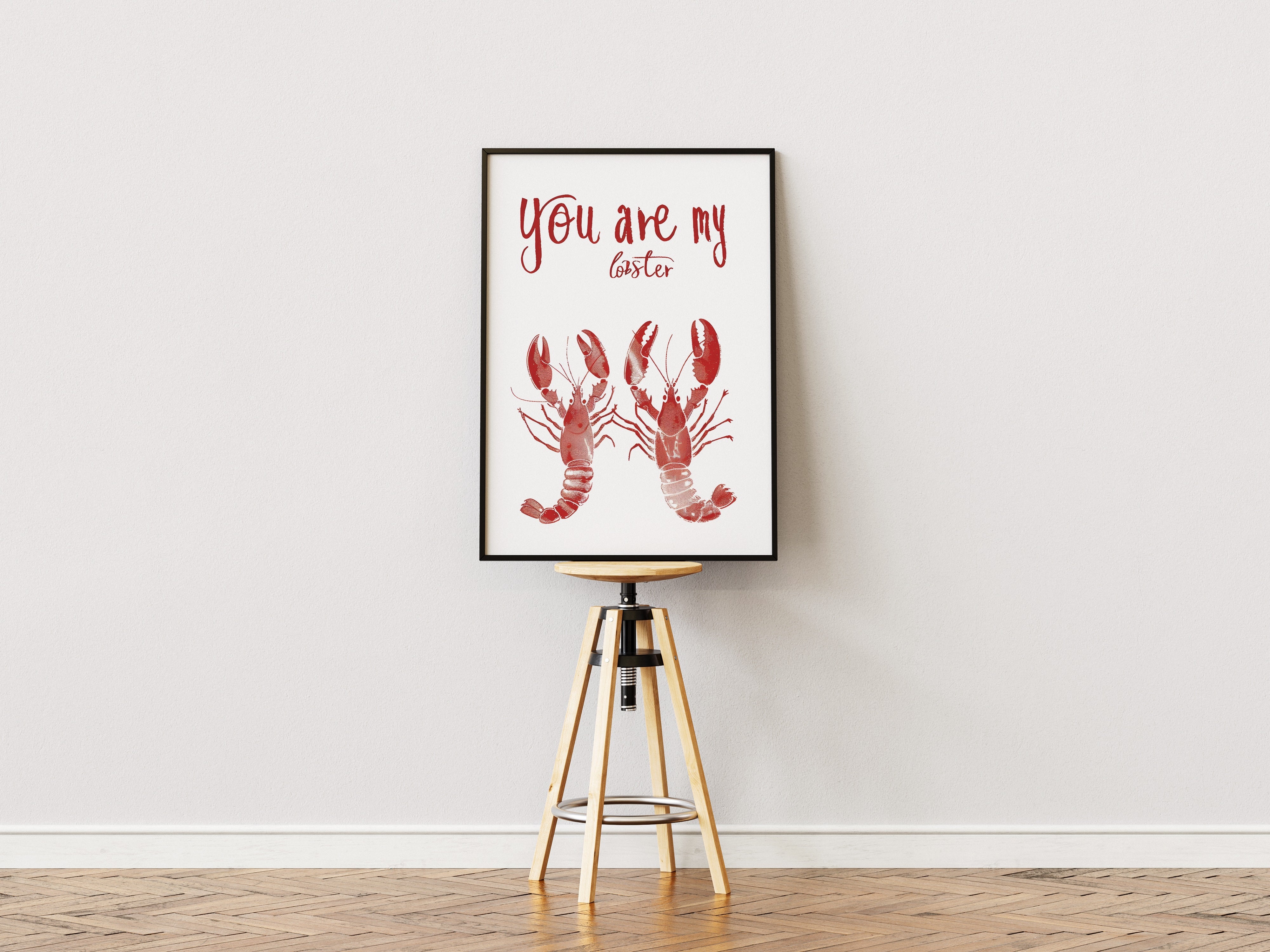 This charming poster with the text “You Are My Lobster” and two red lobsters is both romantic and fun. Perfect as a gift for your partner, for the kitchen, the summer house or as a nice detail on the picture wall.