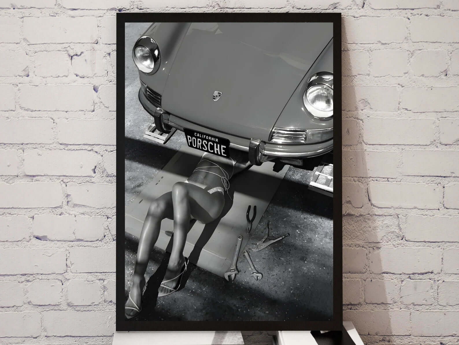 Create a dramatic and luxurious look in your home with the Porsche Noir – Fashion Poster . This black and white poster combines an iconic Porsche motif with a sensual fashion-inspired look, making it a strong and provocative statement piece.