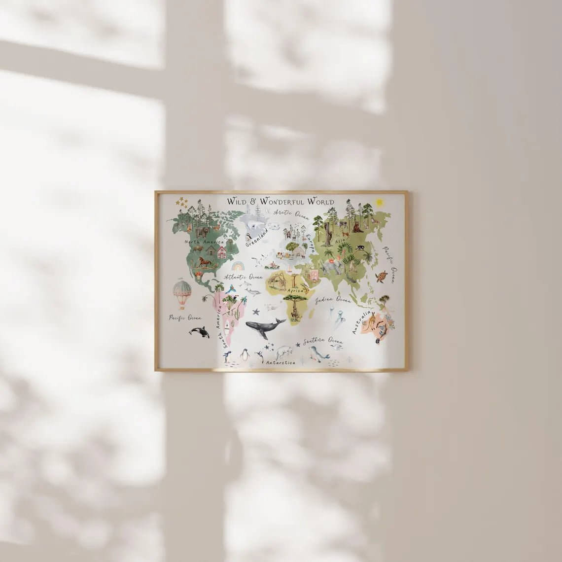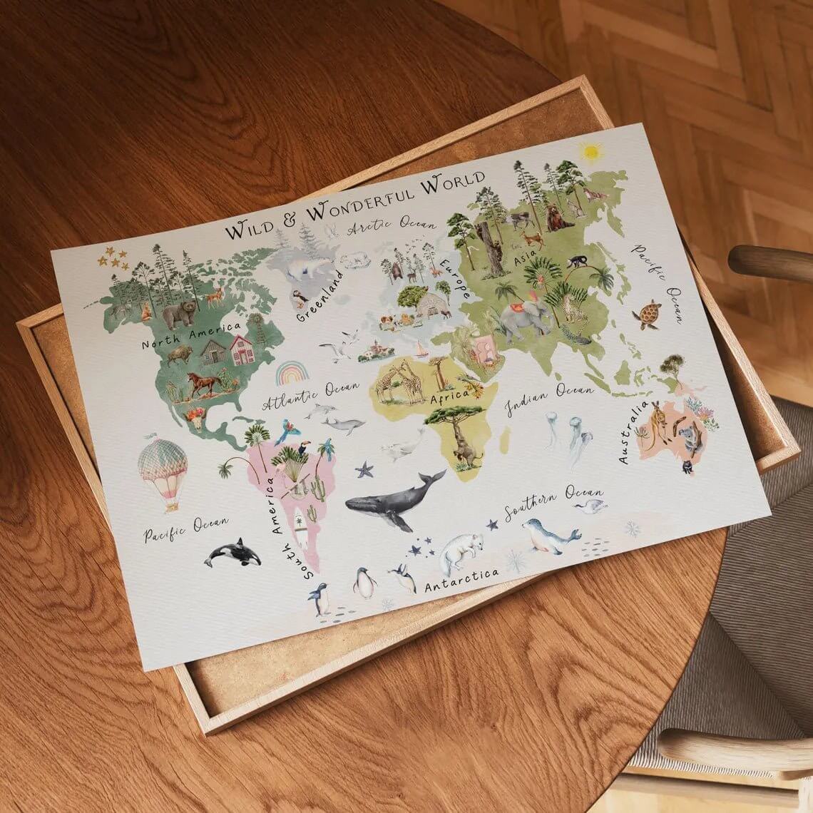 This colorful world map poster for children is perfect for children's rooms, play corners or schools, where play and learning can go hand in hand. A decorative and educational element that also creates coziness and a sense of adventure.