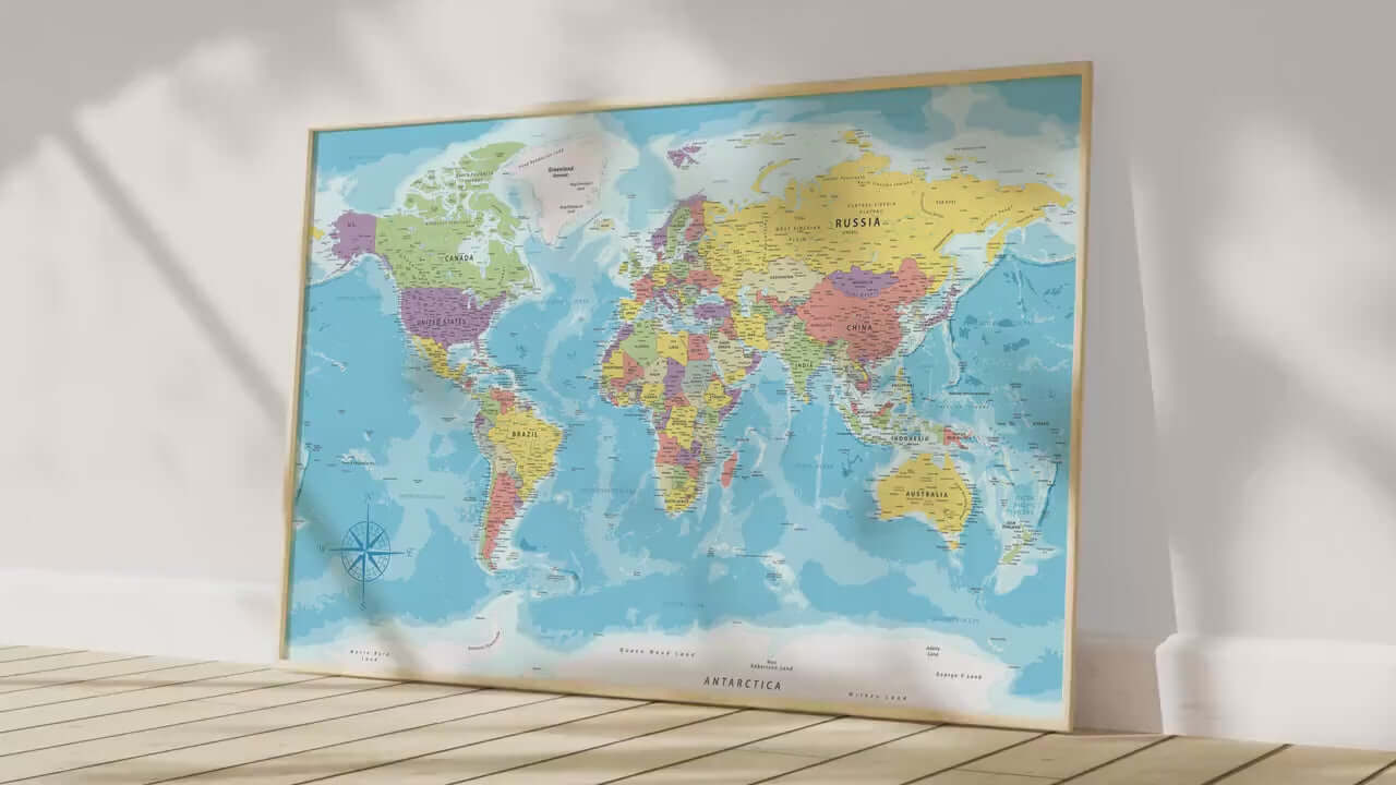 A world map poster creates both a visual statement and a sense of global perspective in your home or office.