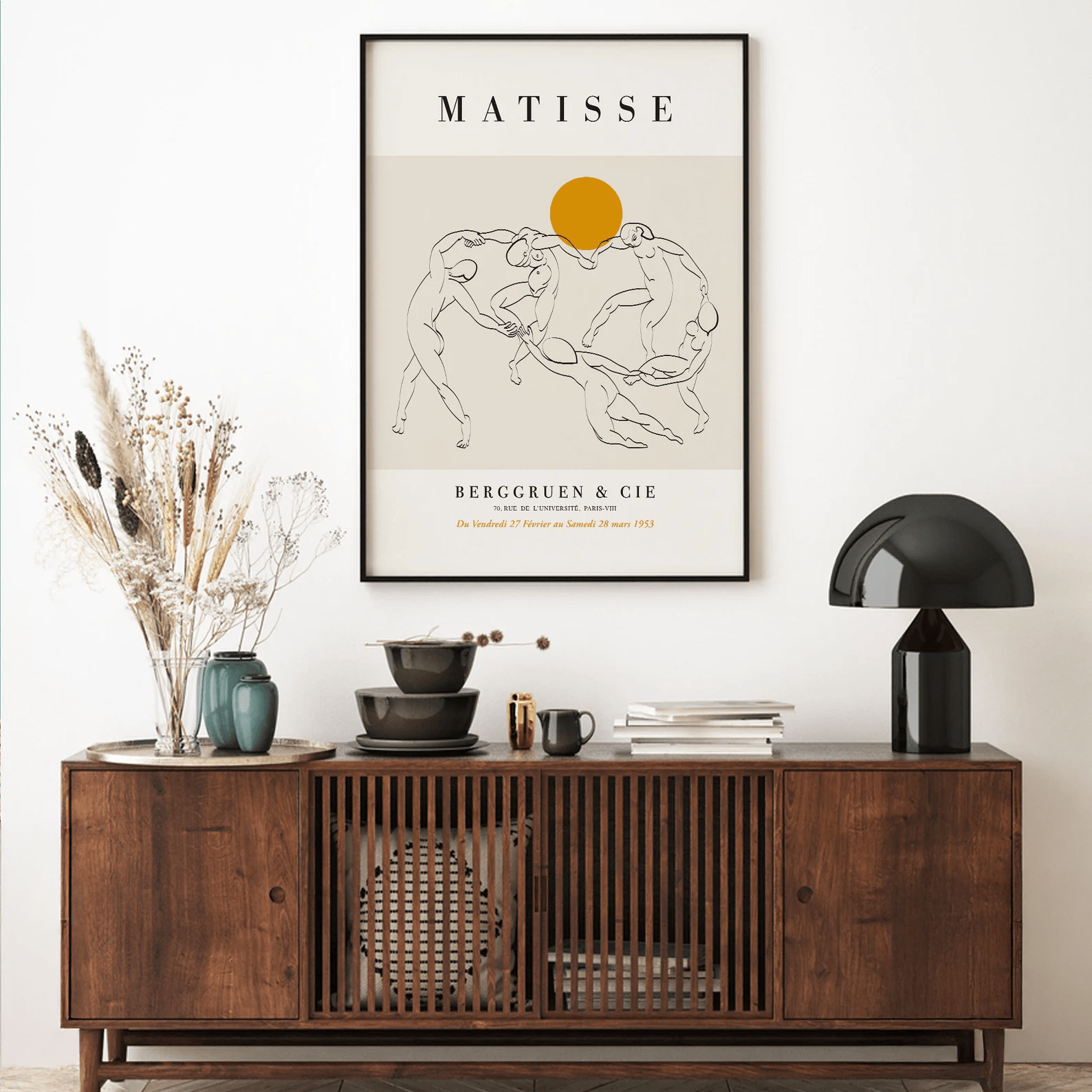 The Dance – Matisse Poster is a beautiful and iconic reproduction of Matisse's famous work with dancing figures in motion. The simple line drawings and warm beige background create a balanced and aesthetic expression that fits perfectly in both minimalist and art-inspired homes. The poster captures the essence of rhythm and harmony and is ideal for those who want to add classic art with a modern twist to their walls.