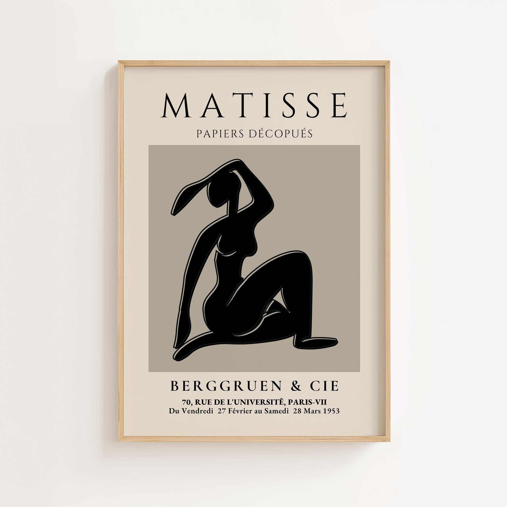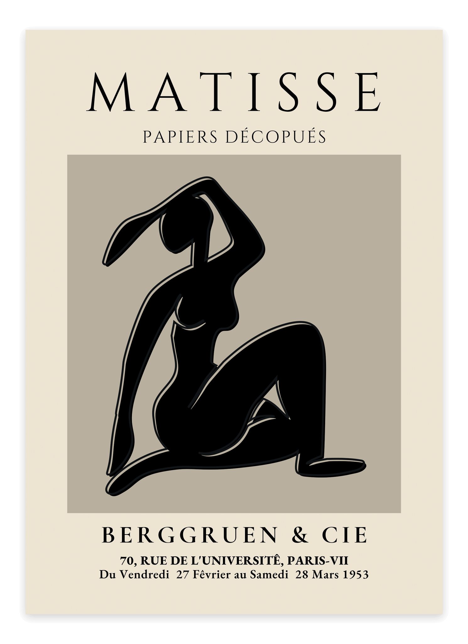 Add an artistic and modern touch to your home with the Black Madame - Matisse Poster . This poster is inspired by Henri Matisse's famous "cut-out" technique, where simple but powerful shapes create a harmonious composition. The black silhouette on the light background gives a strong visual expression that fits perfectly in both minimalist and classic interiors.