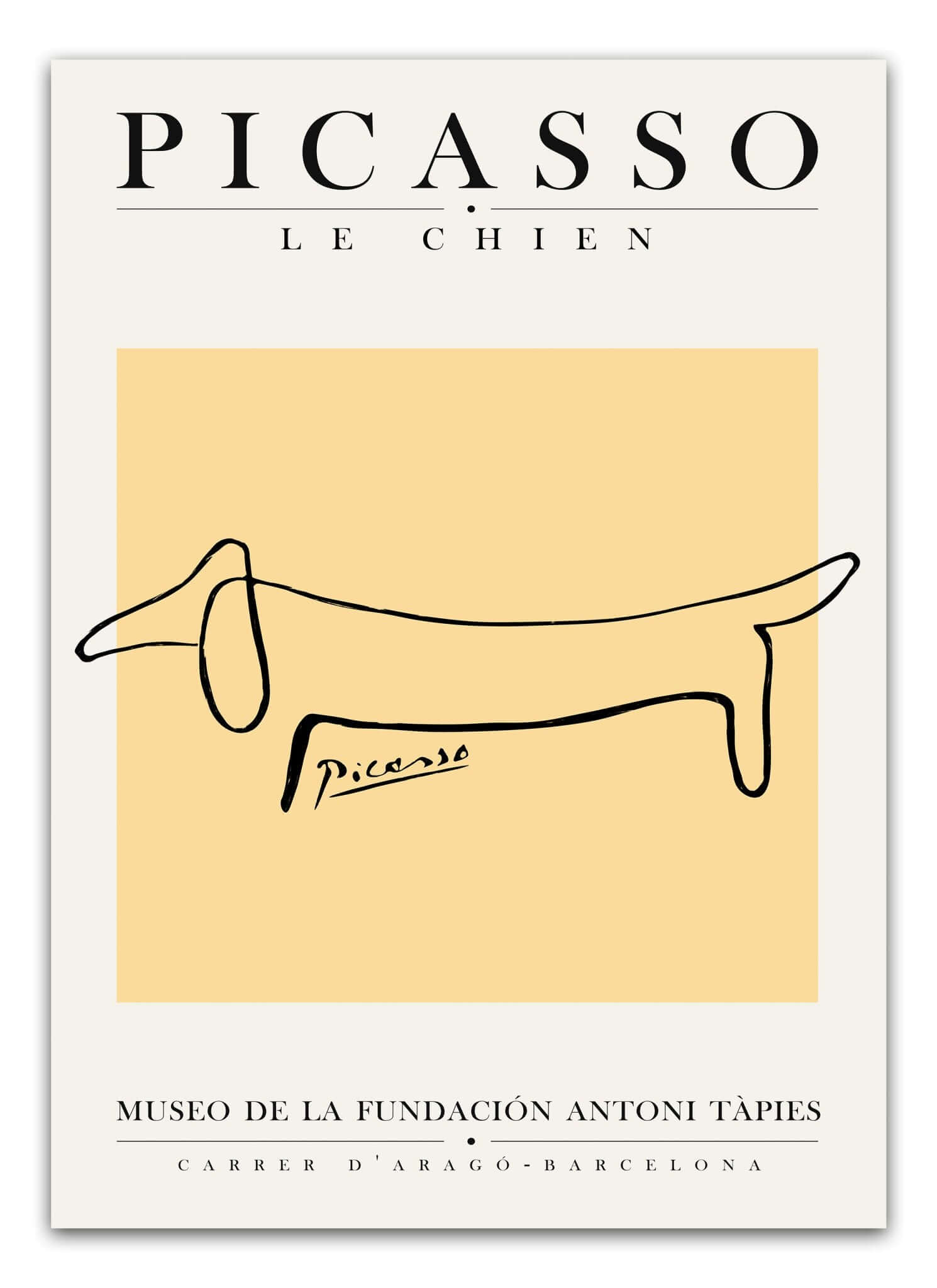 Picasso Le Chien ist ein farbenfrohes und einzigartiges Poster, das eine tolle Ergänzung für jede Einrichtung darstellt. Das Poster ist von Pablo Picassos Kunstwerk „Le Chien“ aus dem Jahr 1953 inspiriert. Das Kunstwerk zeigt einen stilisierten Hund, der zu einem abstrakten und farbenfrohen Werk geformt und rekonstruiert wurde.