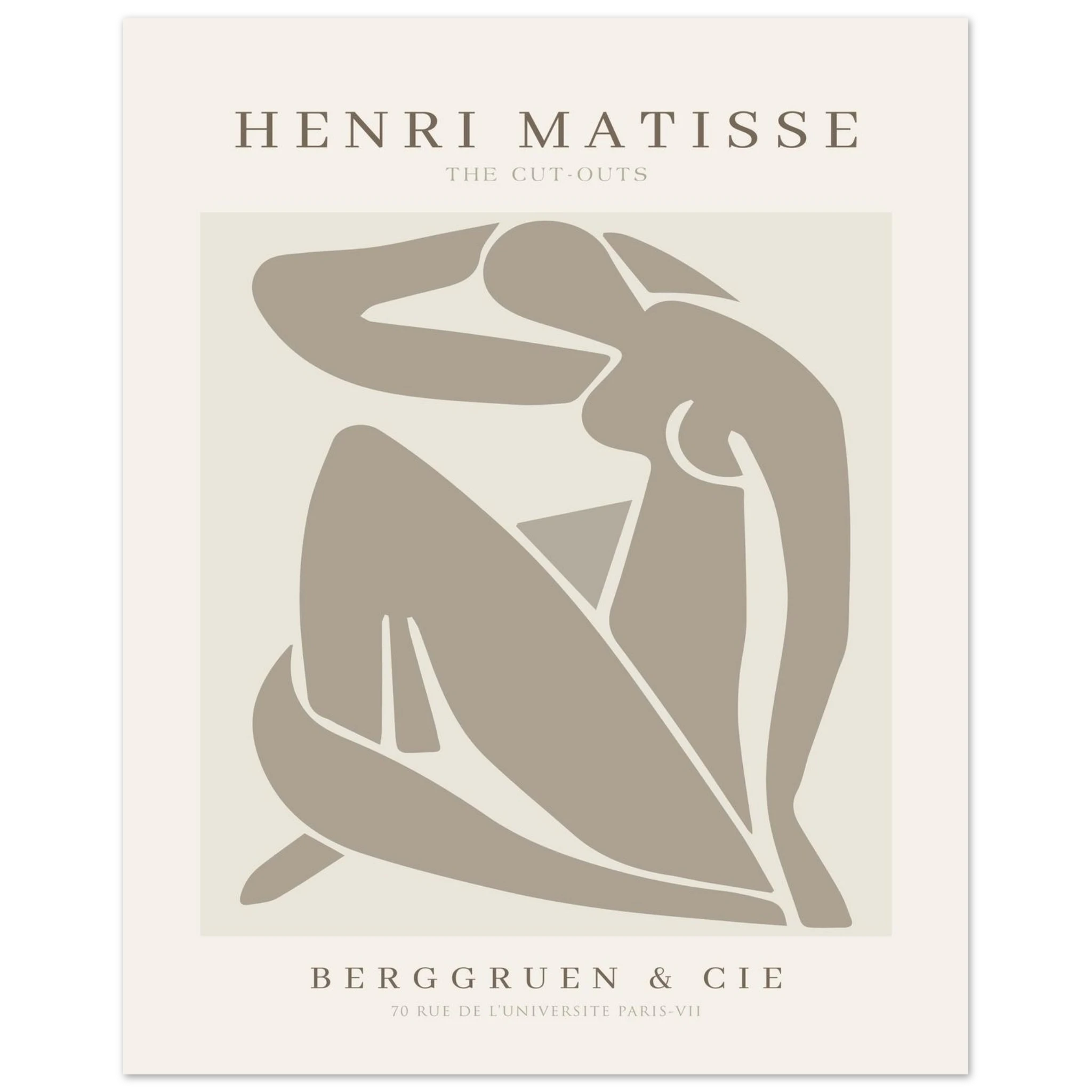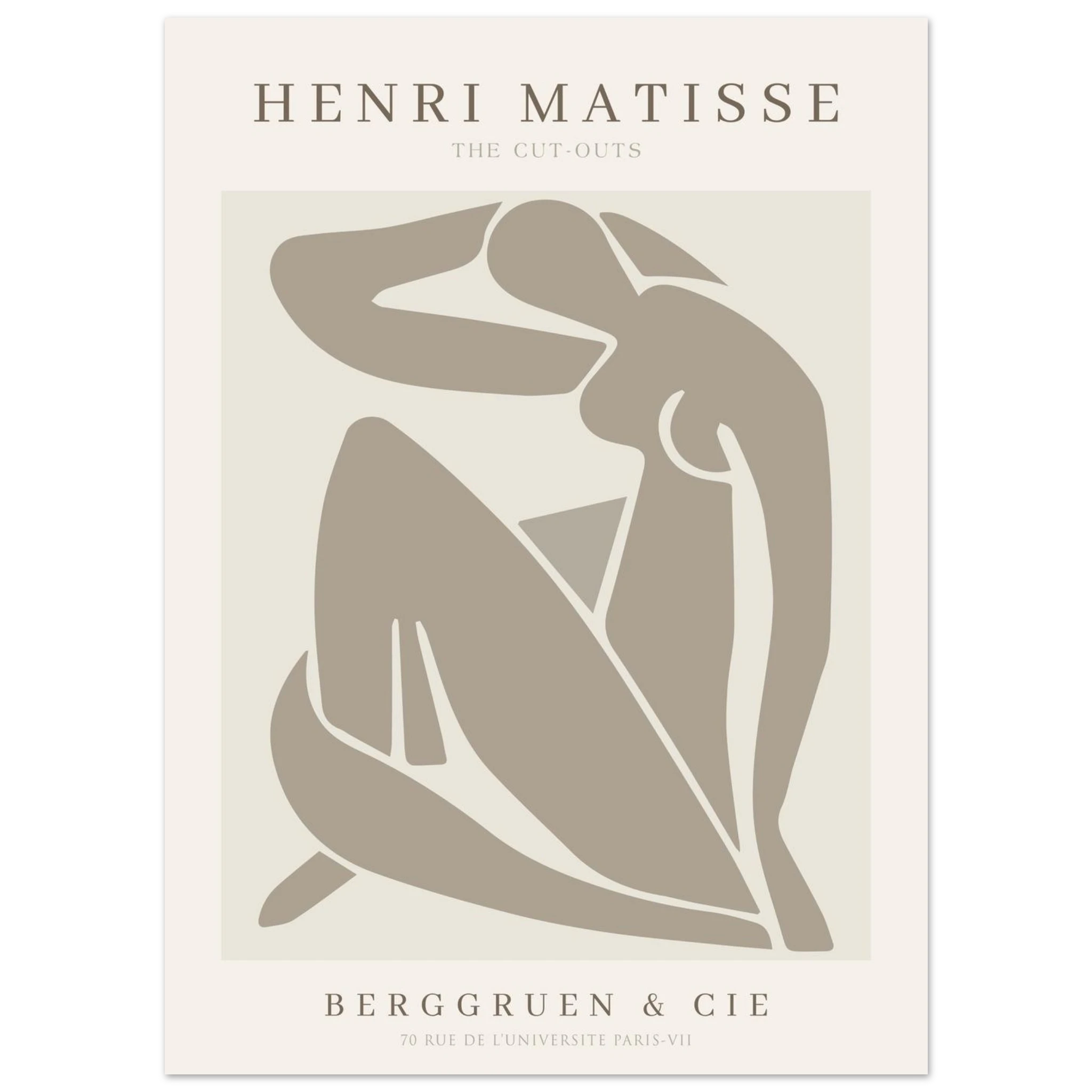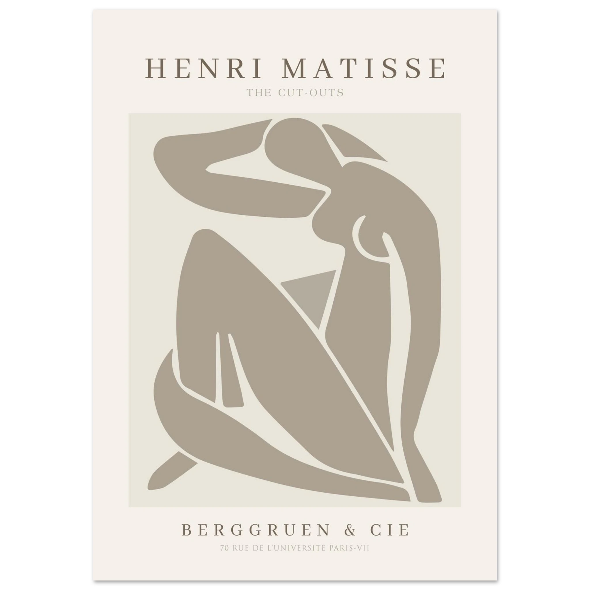 Das Henri Matisse Neutral Cut Outs Poster bringt einen eleganten und modernen Kunststil ins Zuhause. Inspiriert von Matisses ikonischem Cut-Out-Stil ist dieses Poster perfekt für alle, die einen minimalistischen und dennoch einzigartigen Ausdruck wünschen. Dank der neutralen Farbpalette lässt es sich leicht in jede Einrichtung integrieren und eignet sich sowohl einzeln als auch als Teil einer größeren Bilderwand. Eine wahre Hommage an Matisse und die moderne Kunst