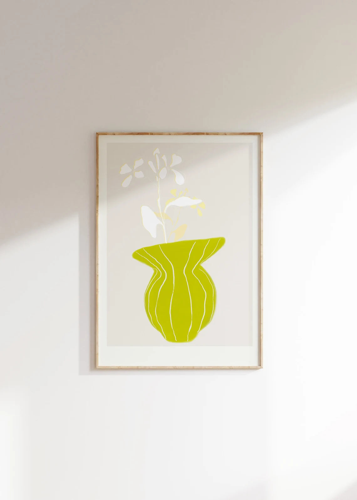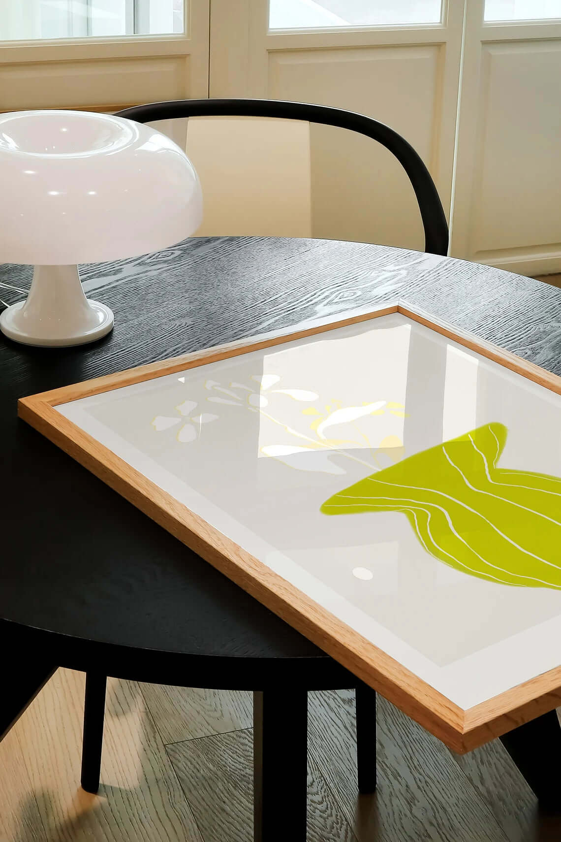 Grøn Form & Balance Plakat er et elegant og moderne kunsttryk med fokus på organiske former og rolige linjer. Den bløde grønne farve skaber et friskt, men afdæmpet udtryk, der tilfører rummet balance og lethed uden at tage over.