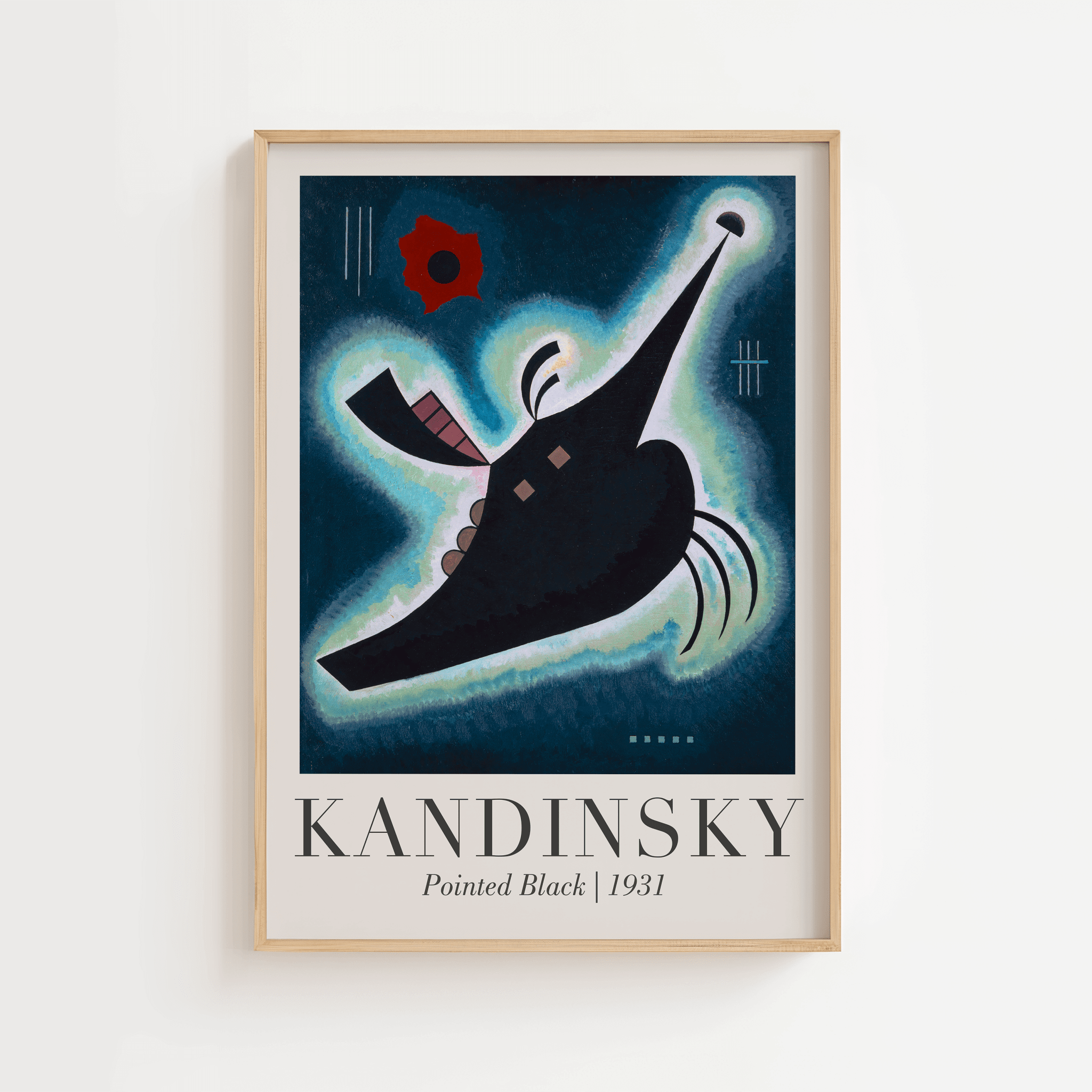 Pointed Black – Kandinsky Poster is a dramatic and visually strong Kandinsky poster , where black, pointed shapes meet colorful abstraction in a work with lots of contrast and intensity. With this design, Wassily Kandinsky demonstrates his ability to convey energy, movement and emotion through geometry.