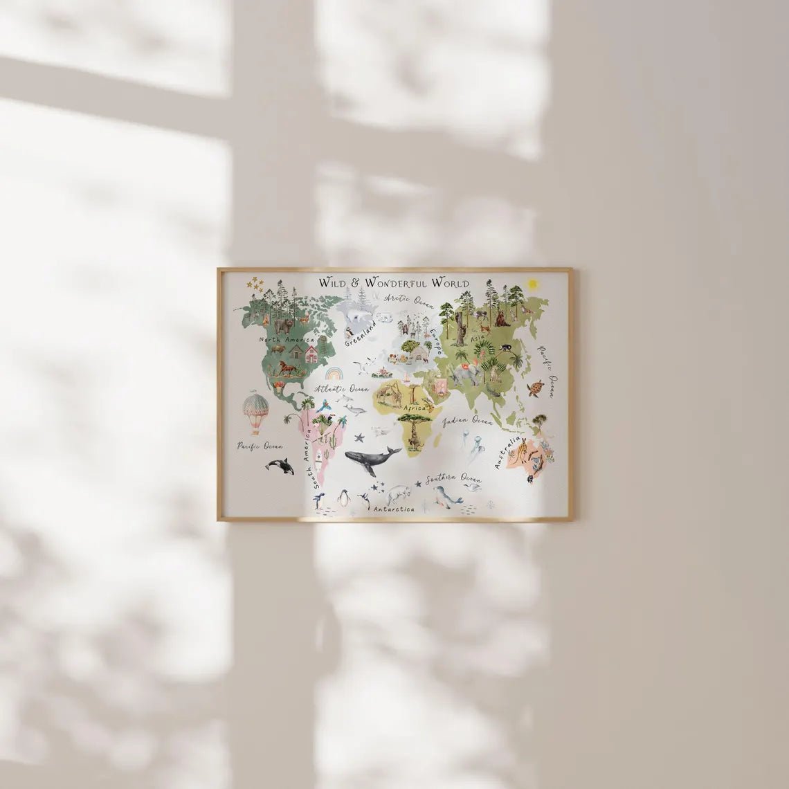 Dieses farbenfrohe Weltkartenposter für Kinder ist ideal für Kinderzimmer, Spielecken oder Schulen, wo Spielen und Lernen Hand in Hand gehen. Es ist ein dekoratives und lehrreiches Element, das Gemütlichkeit und Abenteuerlust weckt.