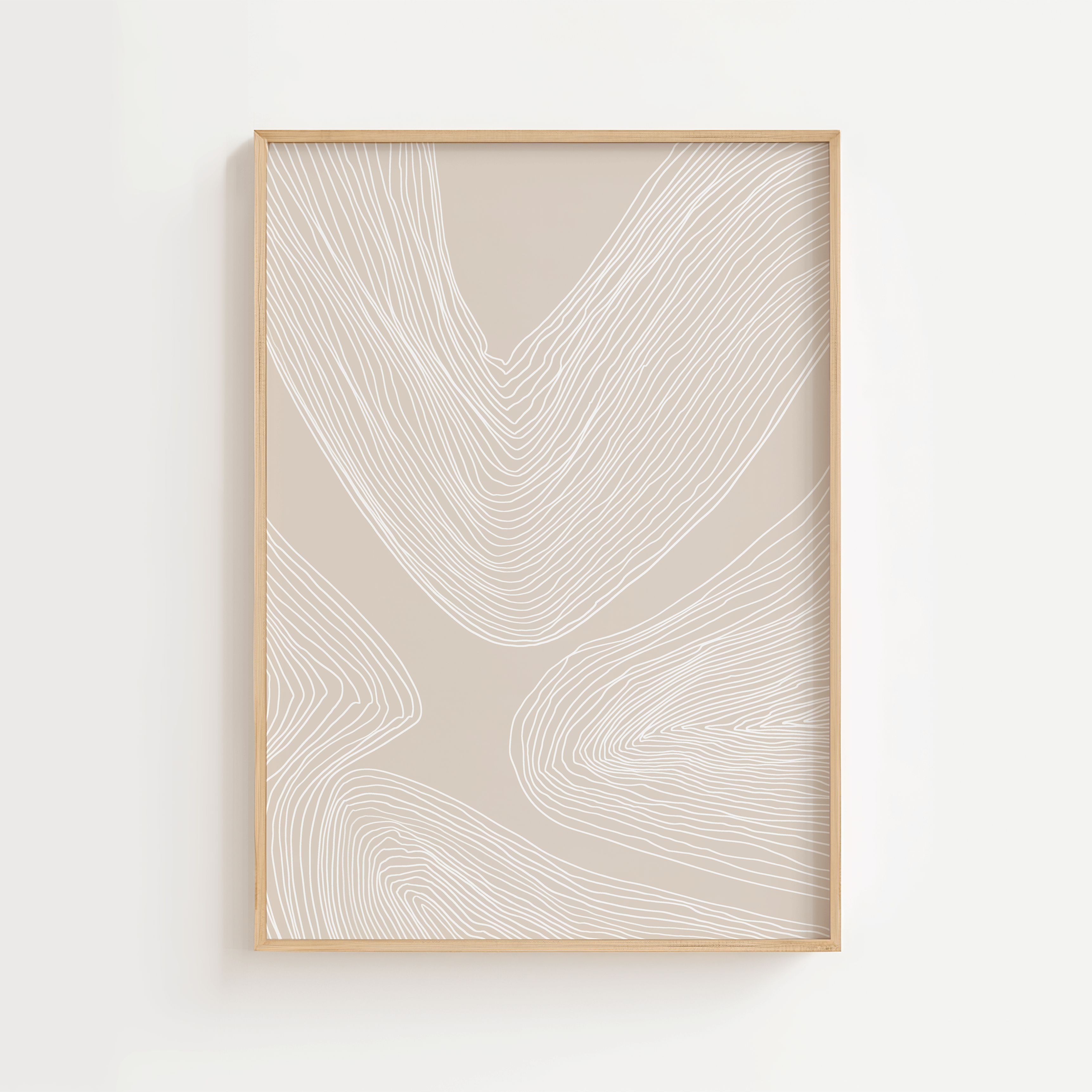 Soft Landscape Lines No.2 er en moderne plakat med bløde, abstrakte linjer inspireret af landskaber og naturlige bevægelser. De fine linjeforløb i varme beige og neutrale toner skaber et roligt og afbalanceret udtryk, som passer perfekt ind i moderne, boho- og skandinaviske hjem.