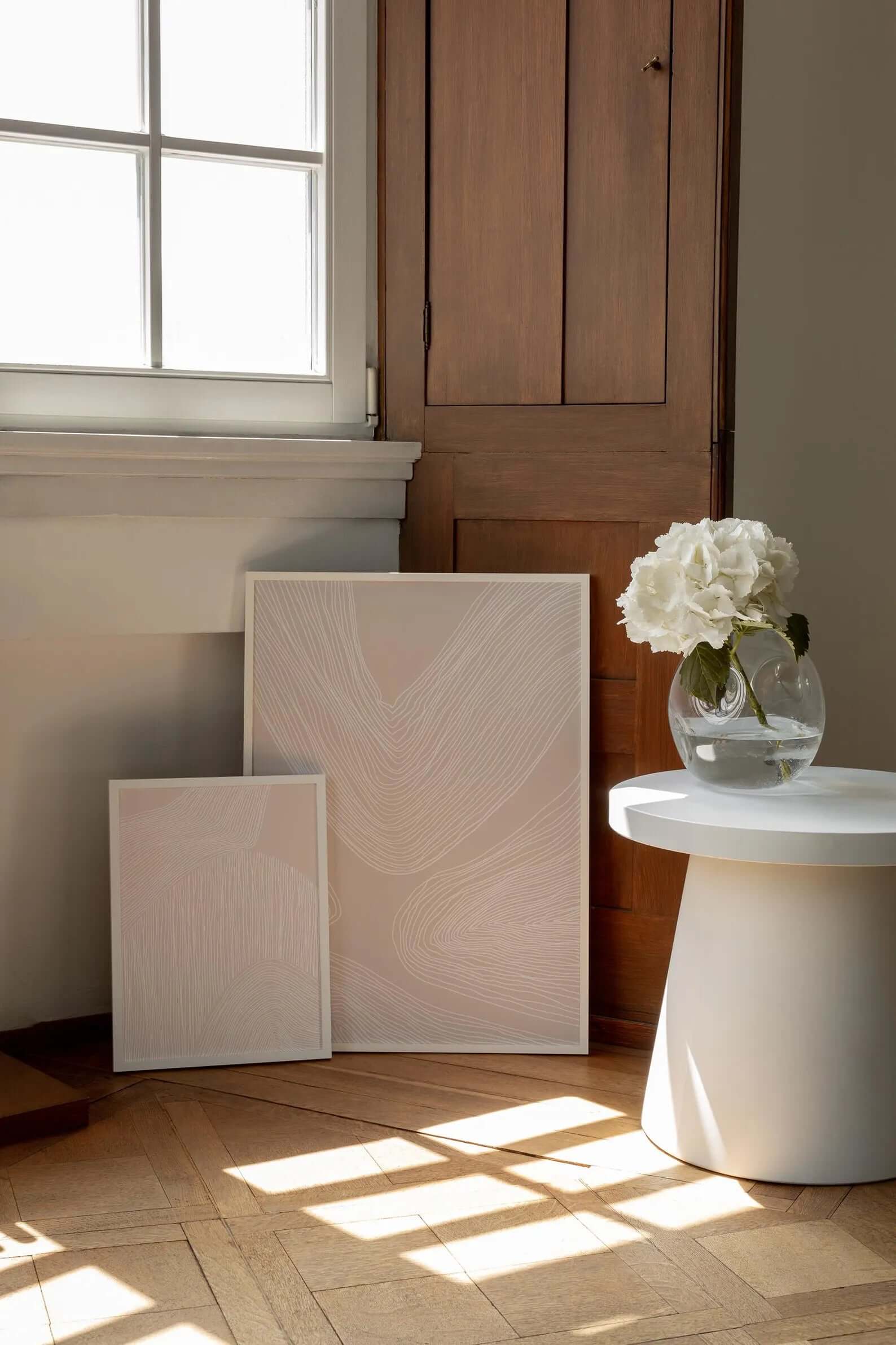 Plakaten har et let og harmonisk udtryk, der tilfører rummet dybde uden at tage fokus. Den fungerer smukt alene, men er samtidig skabt til at indgå i en billedvæg sammen med Soft Landscape Lines No.1 eller andre moderne plakater i neutrale farver.