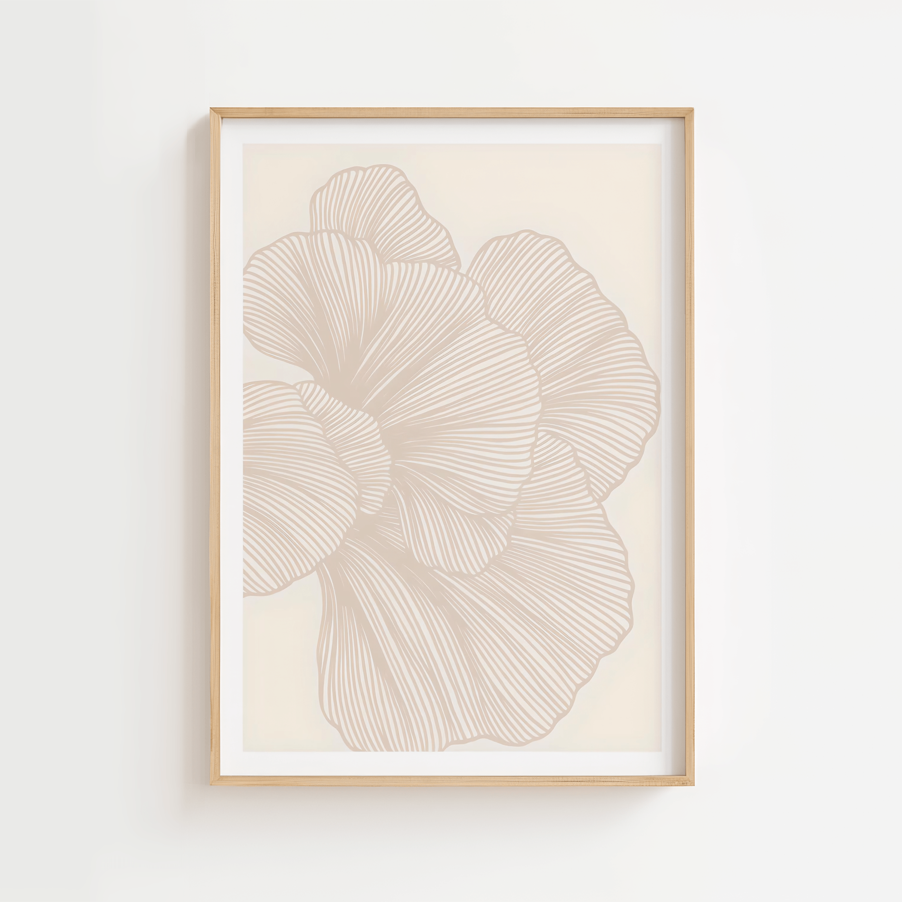 Die organischen Linien des Posters verleihen Tiefe und Dynamik, ohne aufdringlich zu wirken. Es wirkt wunderbar für sich allein, eignet sich aber auch ideal als Teil einer Bilderwand mit anderen modernen Postern in neutralen Farben.