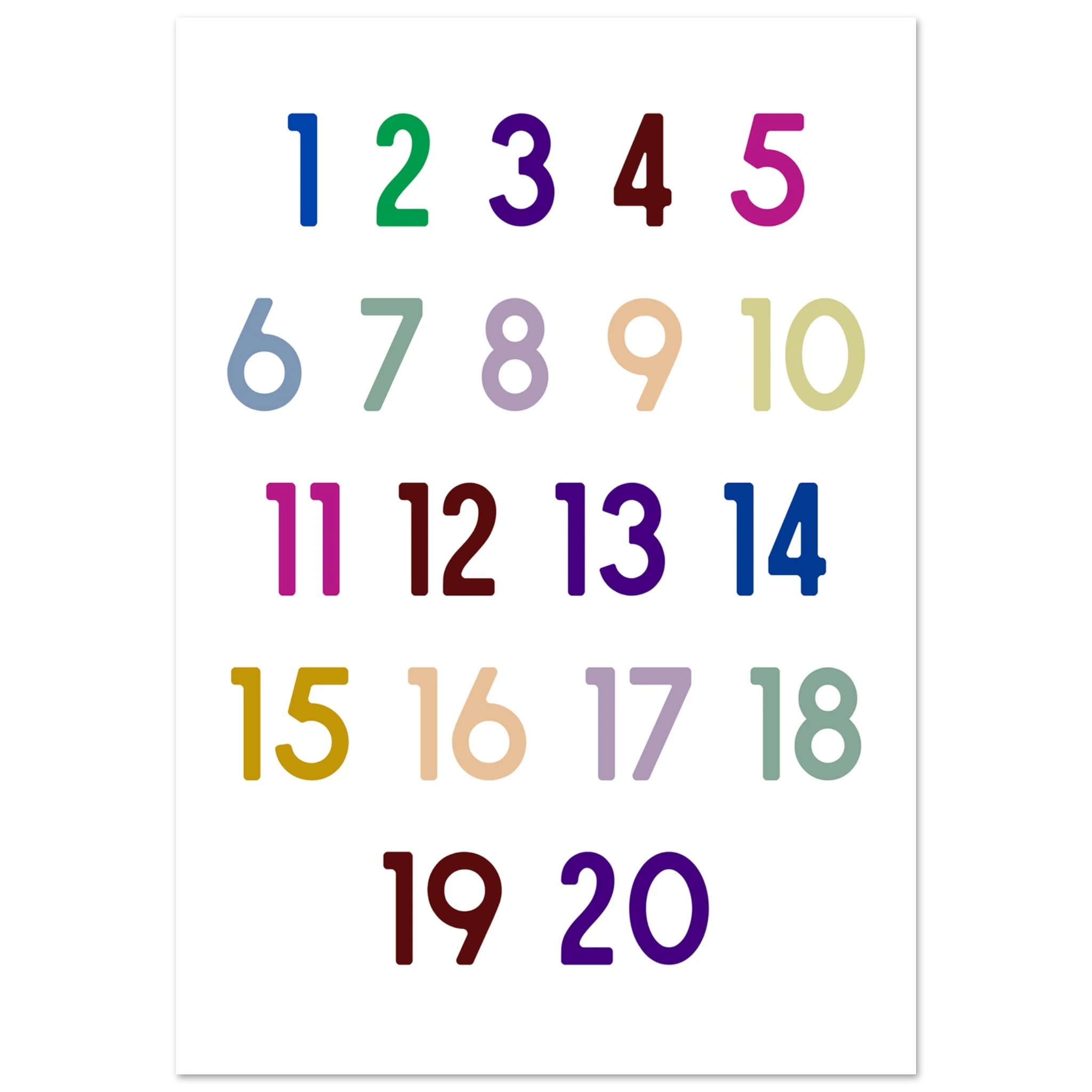 1-20 Numbers Poster is a fun and colorful way to introduce numbers to the little ones. With an inviting design, the poster helps children learn to count from 1 to 20, while also decorating the wall nicely. Perfect for the children's room, classroom or as a gift idea for little number enthusiasts. Create an educational atmosphere and make learning fun!