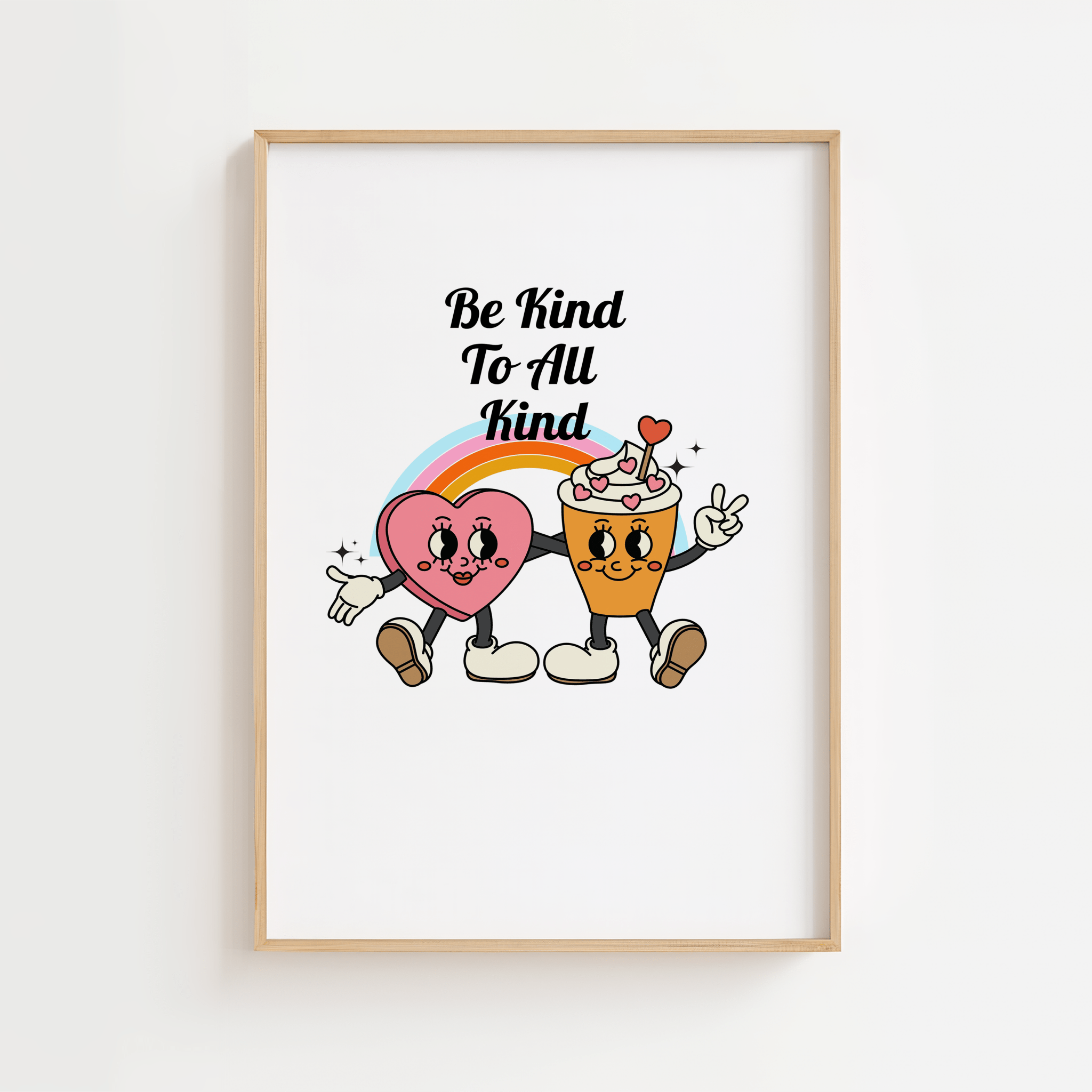 Be Kind, to All Kind – Poster is a loving and warm poster with a message that never goes out of style. With its simple and colorful style, it reminds us of something very basic: to be kind – to everyone.