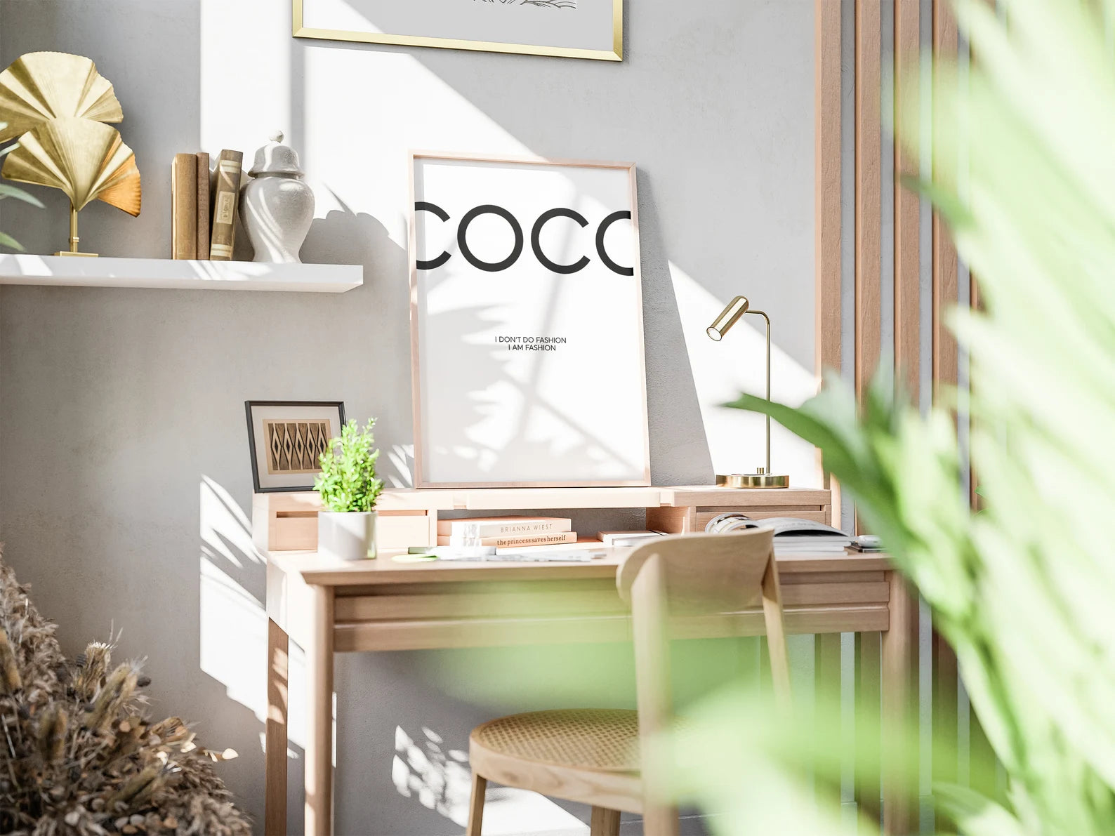Denne fashion plakat passer smukt ind i alt fra moderne stuer til soveværelser, kontorer og walk-in closets. Den enkle typografi og stærke Coco Chanel-citat gør den til et tidløst statement piece, som både modeelskere og designentusiaster vil værdsætte.