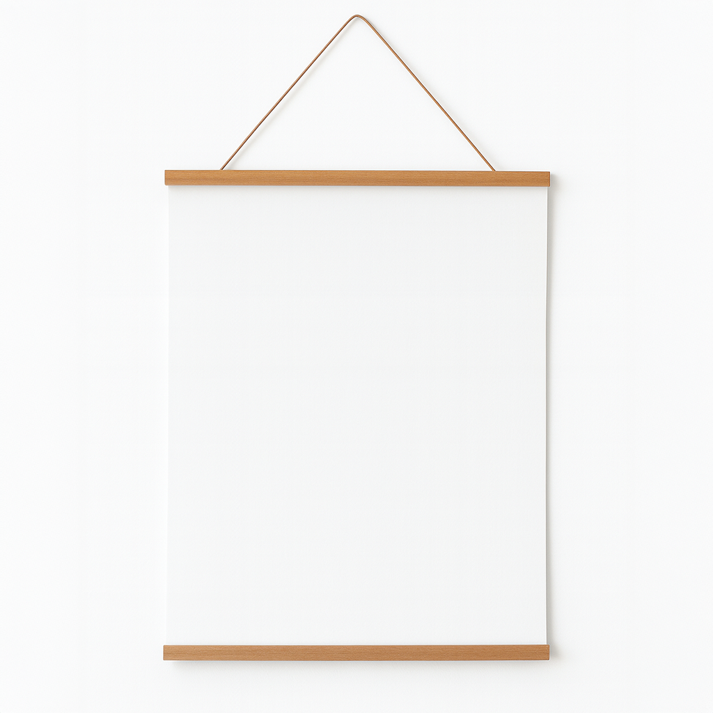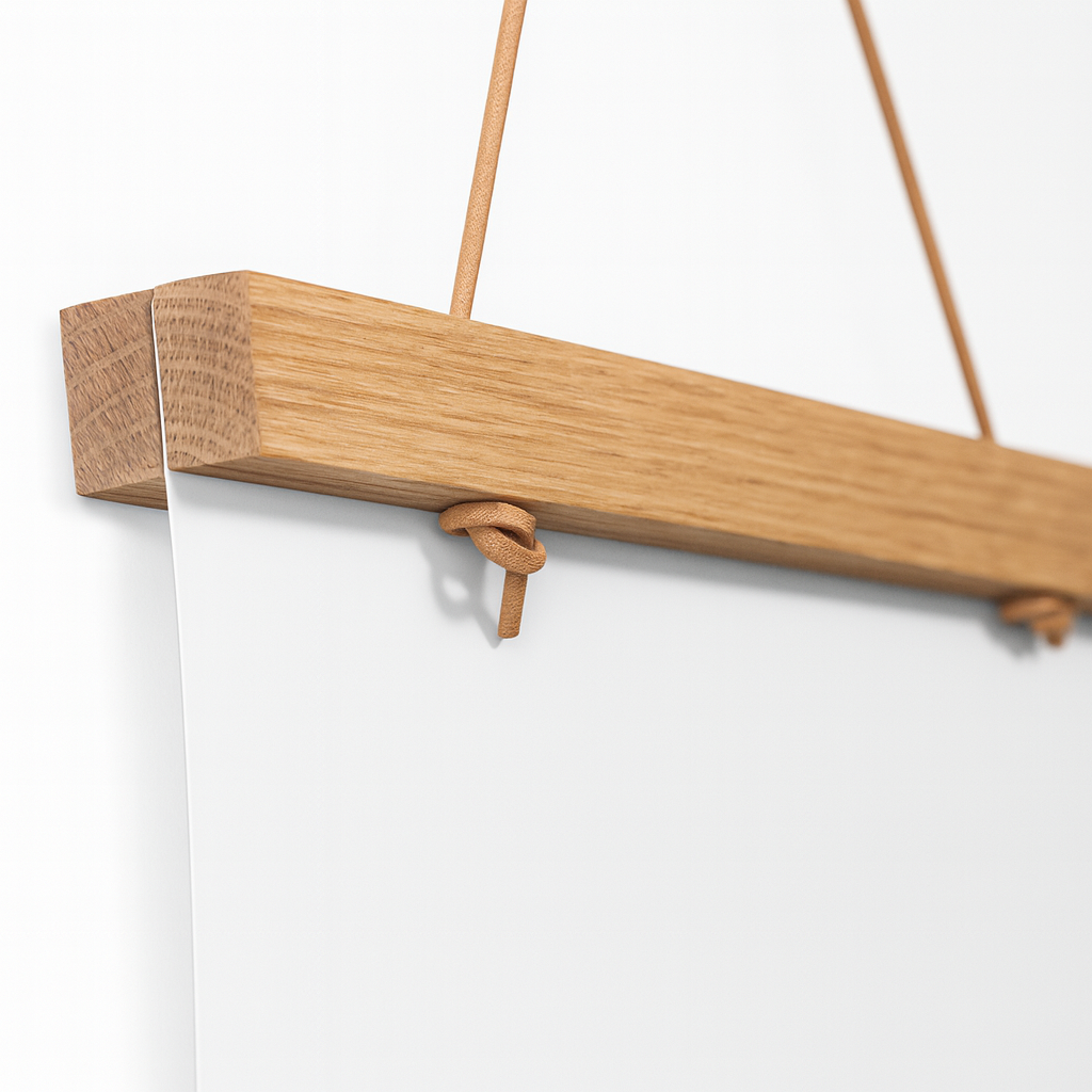 Fremhæv dine plakater med vores plakatliste i lys eg, fremstillet af ægte træ. Denne plakatophæng i egetræ giver et varmt og naturligt udtryk, der passer perfekt til skandinavisk indretning, moderne hjem og klassiske billedvægge.