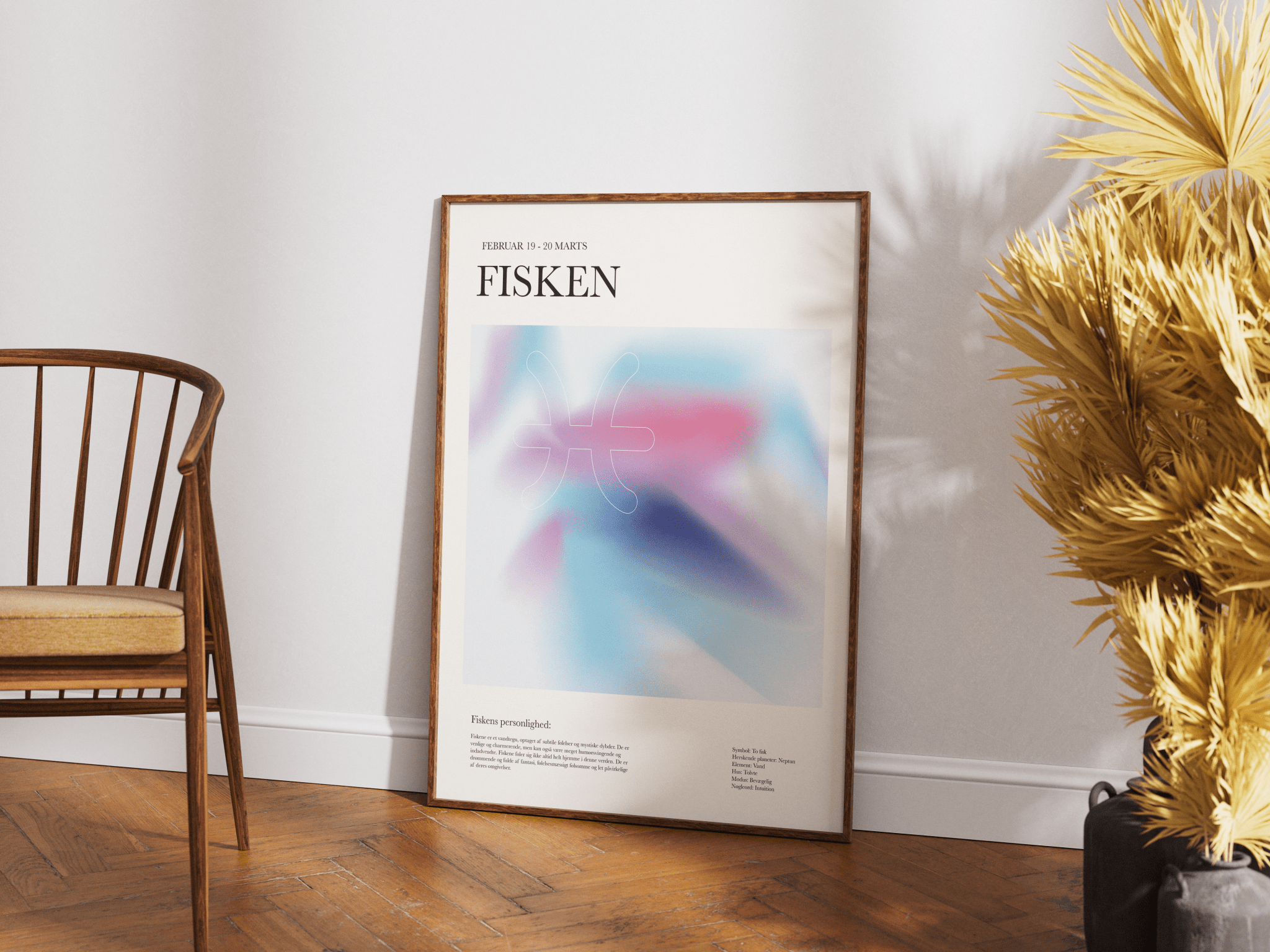 Personalize your decor with this colorful zodiac sign poster of Pisces (February 19 - March 20) . The poster is designed in soft, dreamy pastel colors that reflect the intuitive and imaginative nature of Pisces.