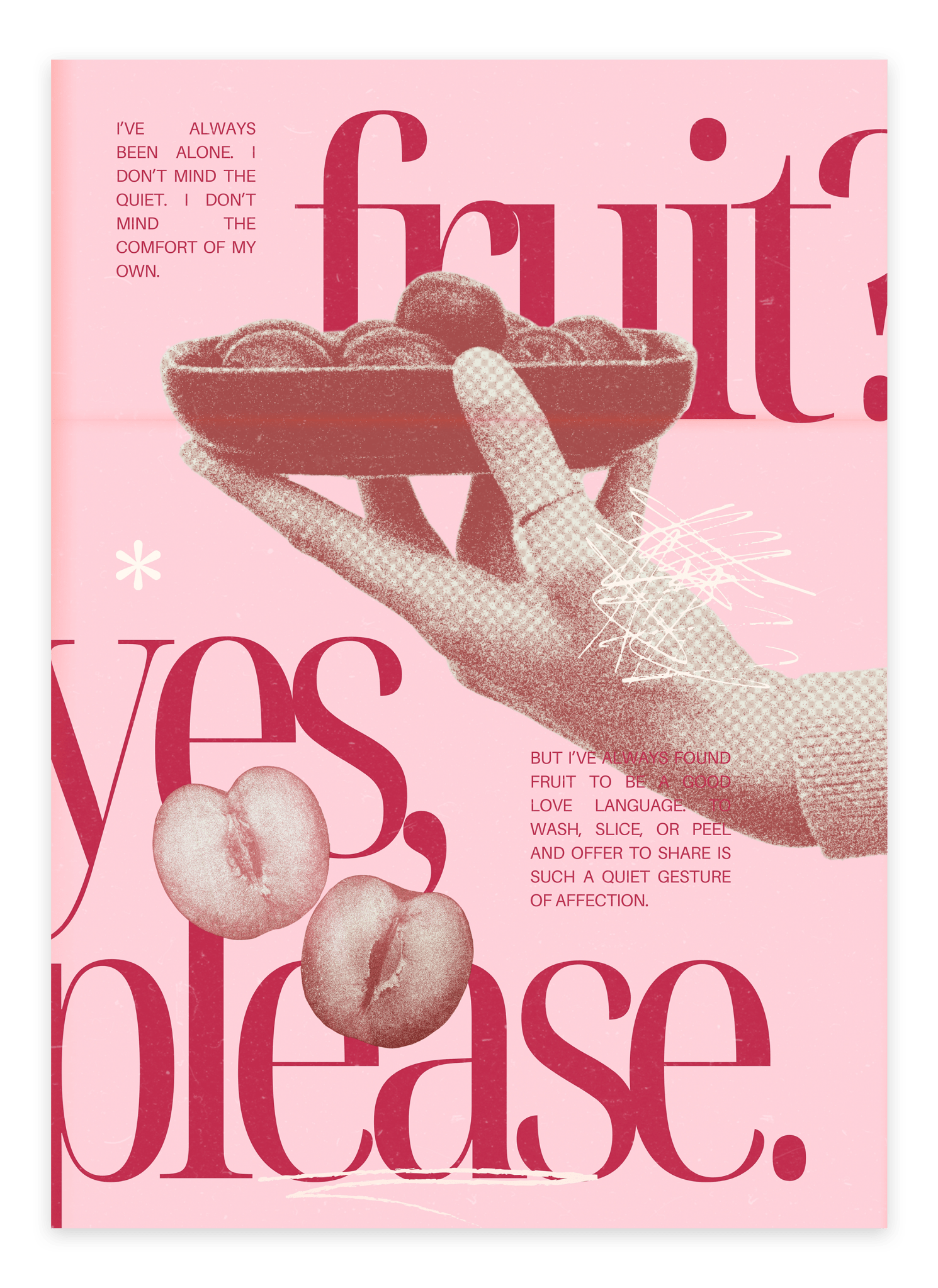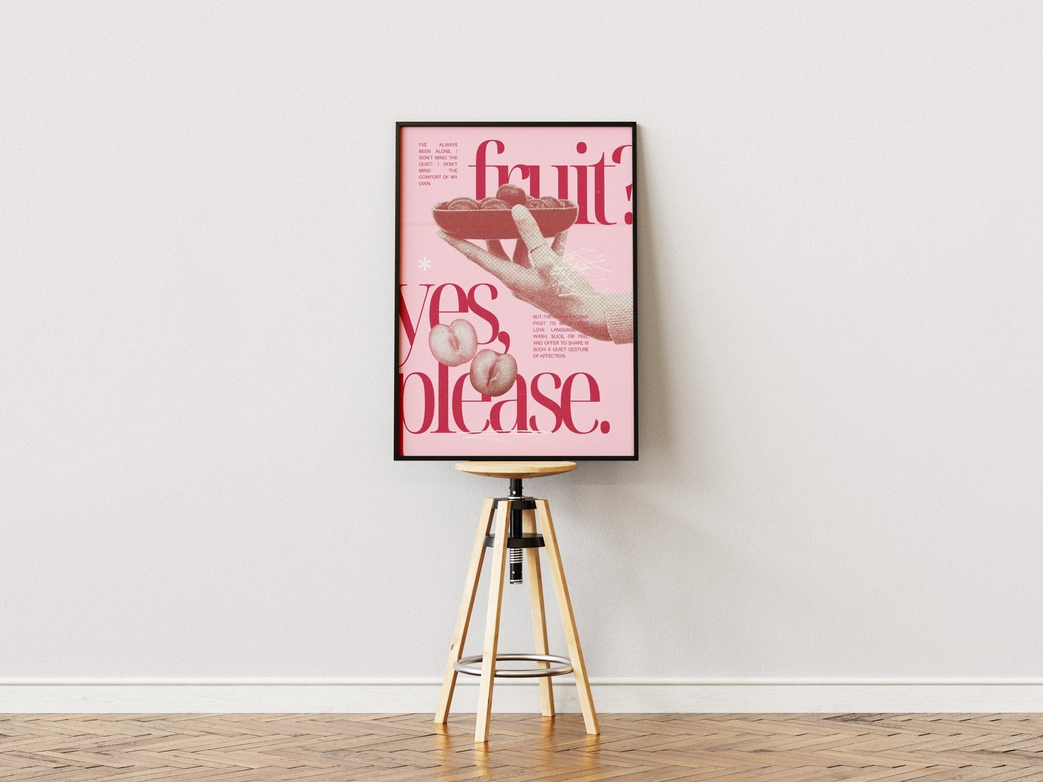 Add a fresh and colorful vibe to your home with the Fruit, Yes Please - Pink Poster . This artistic poster combines a playful fruit theme with a trendy pink background, creating a lively and stylish atmosphere. Perfect for the kitchen, living room or a creative art wall.