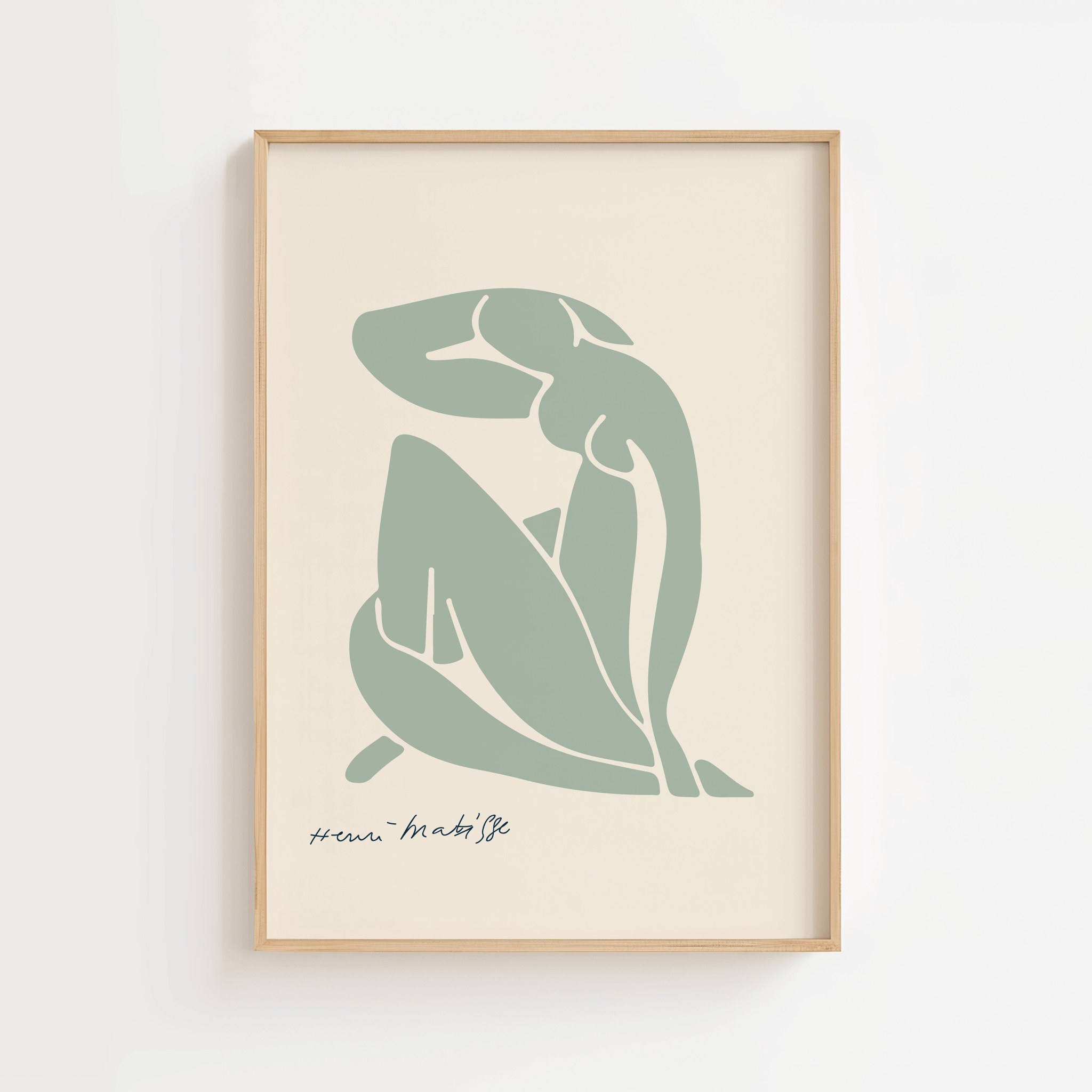H. Madame – Matisse Poster is a calm and elegant art poster inspired by Henri Matisse's iconic line art and figurative motifs. The green silhouette of a woman creates a sense of nature, balance and strength – a work of art that adds a harmonious and artistic touch to the room.