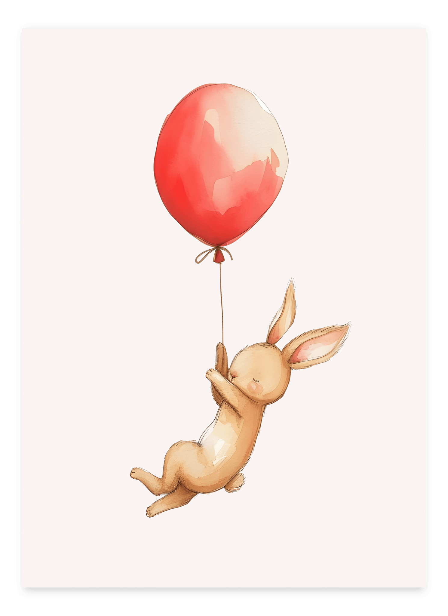 The poster fits perfectly above the bed or as part of a picture wall with other fairy-tale motifs. Printed on quality material with sharp details and soft colors, Rabbit with Balloon - Children's Poster ensures that the room feels cozy and inviting.