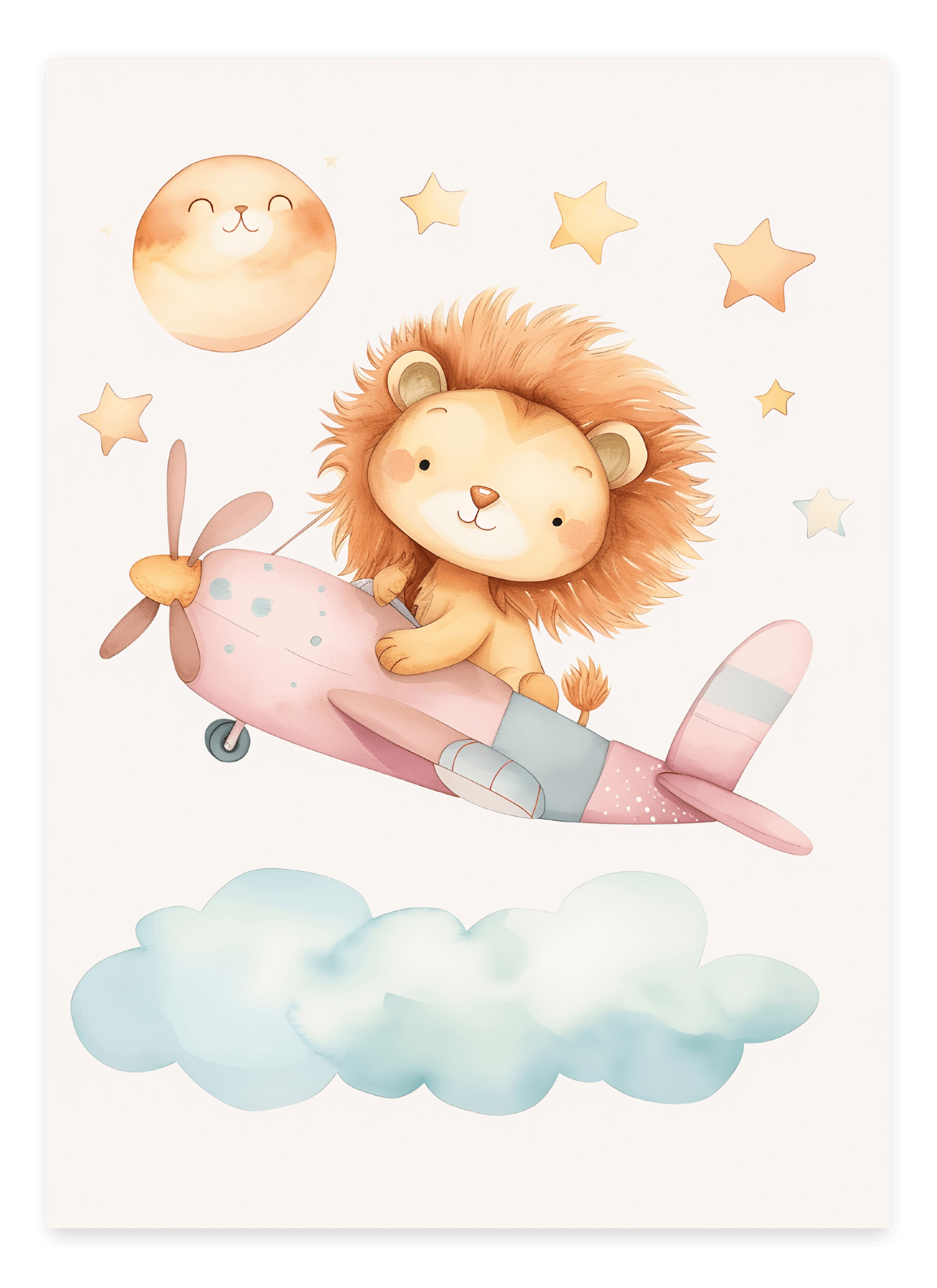 Let your imagination soar with Lion in a Pink Plane - Children's Poster ! This charming children's poster shows a cool lion piloting his pink plane through the clouds. Perfect for kids who love animals, airplanes and dreamy adventures.