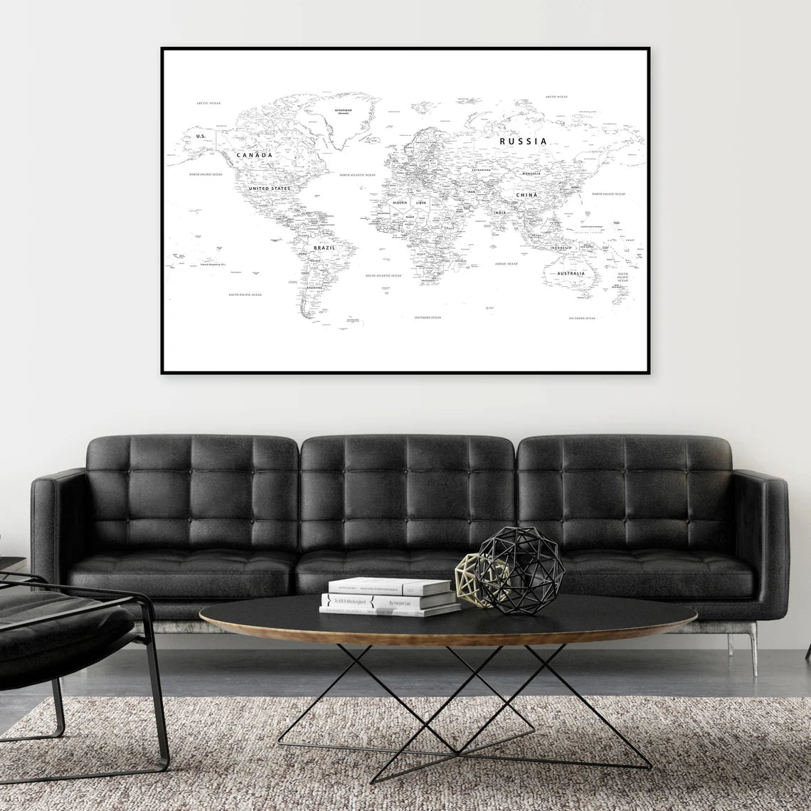 Minimalist - World Map Poster is the perfect choice for those who love simplicity and modern design. With clean lines and an elegant world map motif, the poster fits perfectly into Scandinavian, minimalist or Nordic inspired home decor.