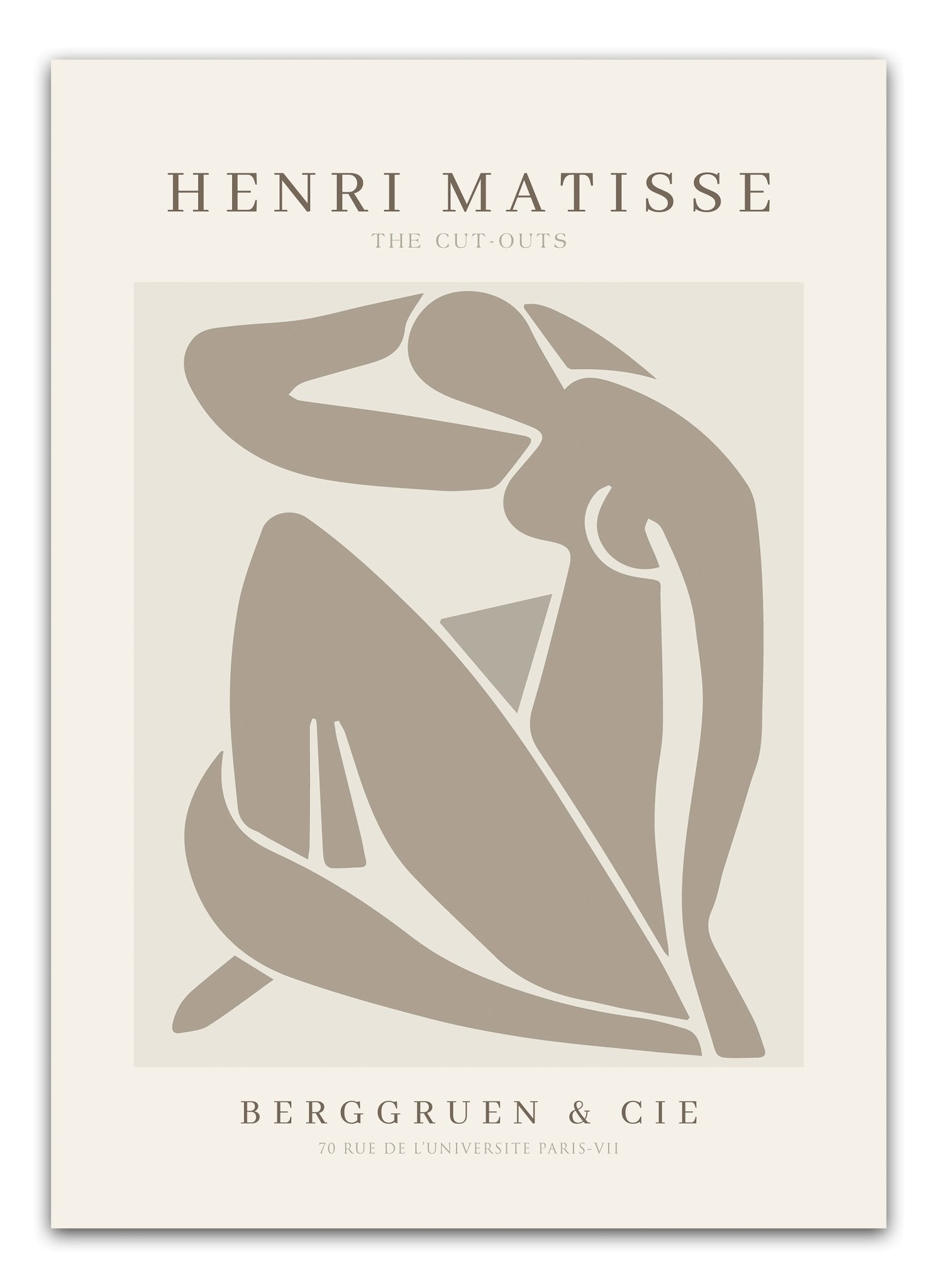 The Henri Matisse Neutral Cut Outs poster brings an elegant and modern art style into your home. Inspired by Matisse's iconic cut-out style, this poster is perfect for those who want a minimalist yet unique look. The neutral color palette makes it easy to integrate into any decor, and it works well both on its own and as part of a larger art wall. A true tribute to Matisse and modern art