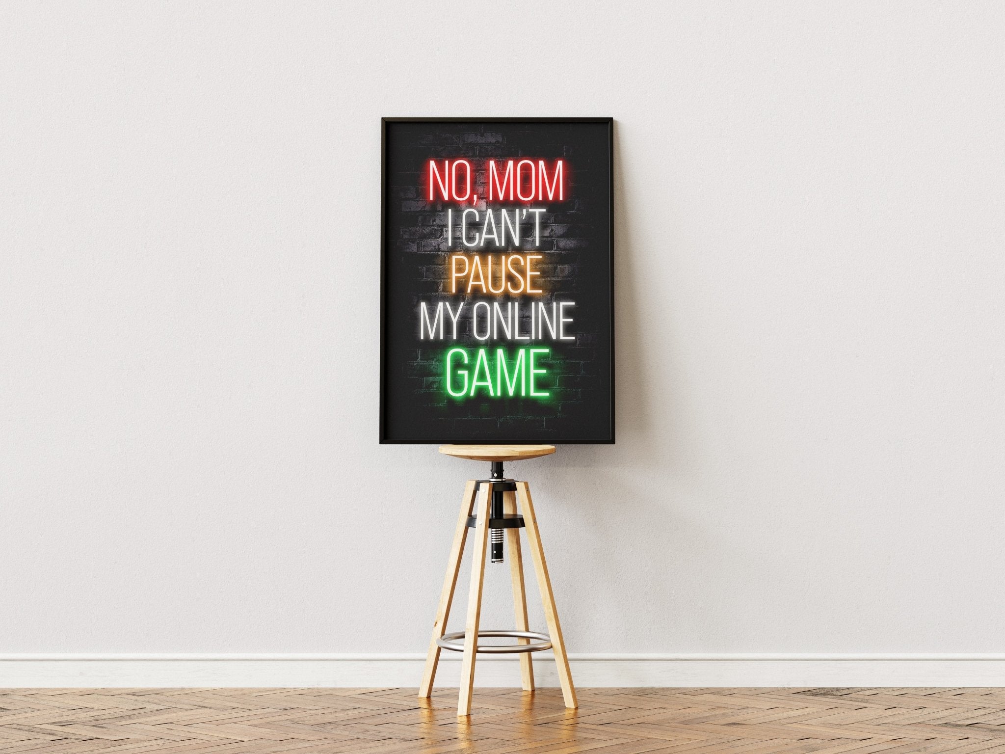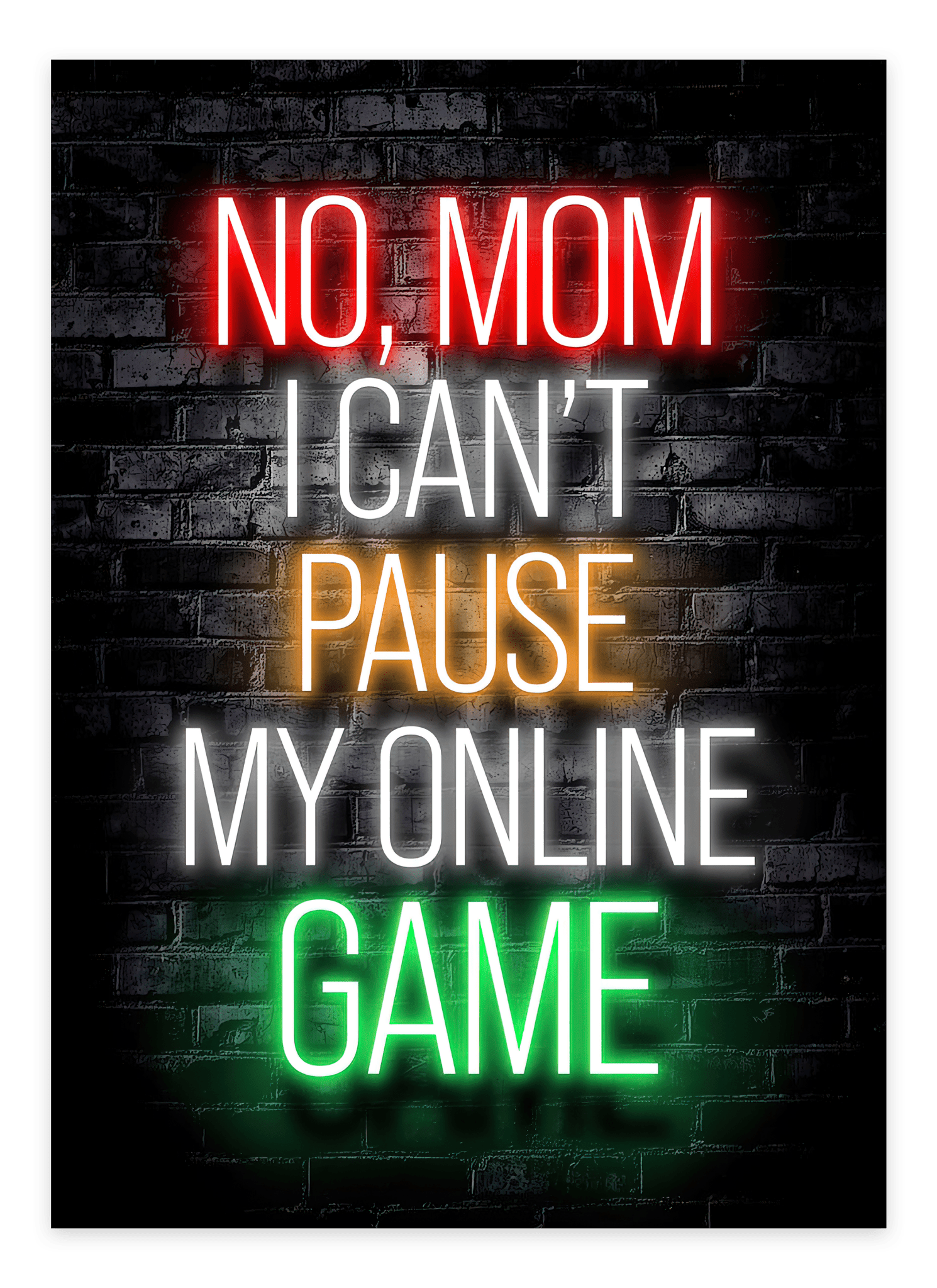 Every gamer knows the frustration, and now you can show it with No Mom, I Can't Pause My Online Game - Gaming Poster ! This funny gamer poster is the perfect wall decoration for any gaming den. With a stylish design and a humorous quote, it's a must-have for any serious gamer.