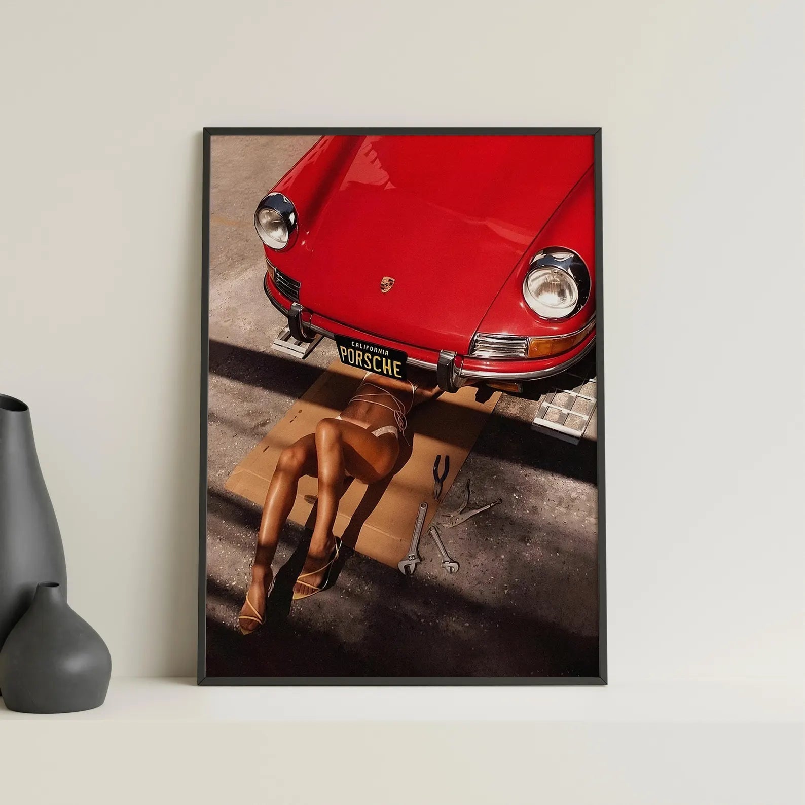 Giv dit hjem en stærk og luksuriøs vibe med Porsche Passion – Fashion Plakat. Motivet kombinerer en ikonisk rød Porsche med et sensuelt og provokerende fashion-inspireret udtryk, der gør plakaten til et ægte statement piece.
