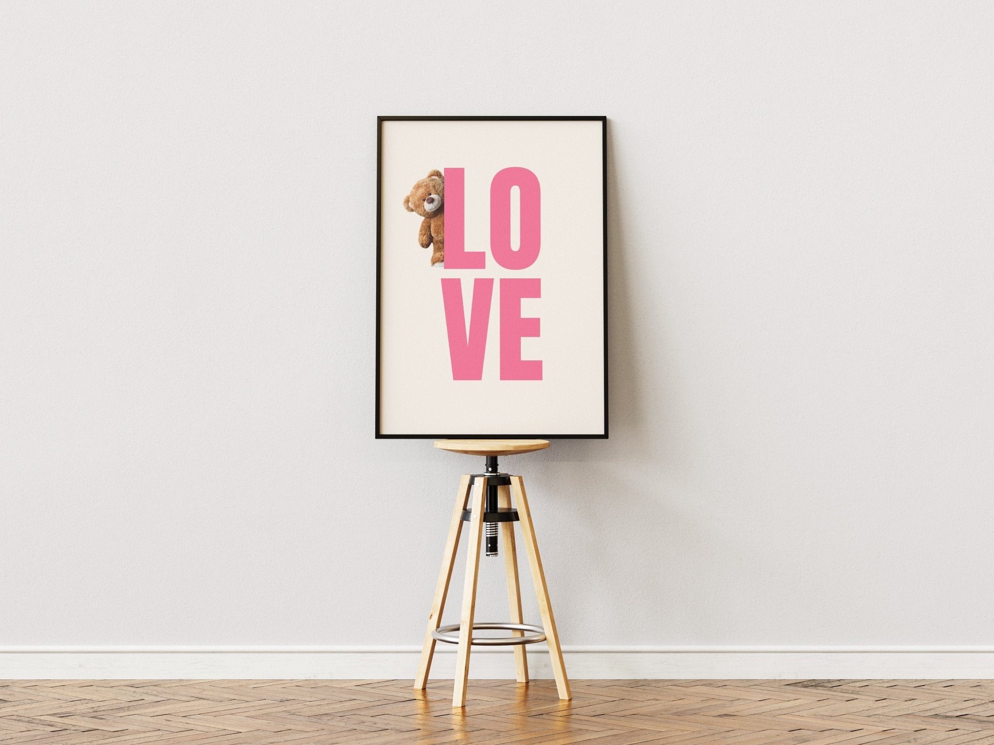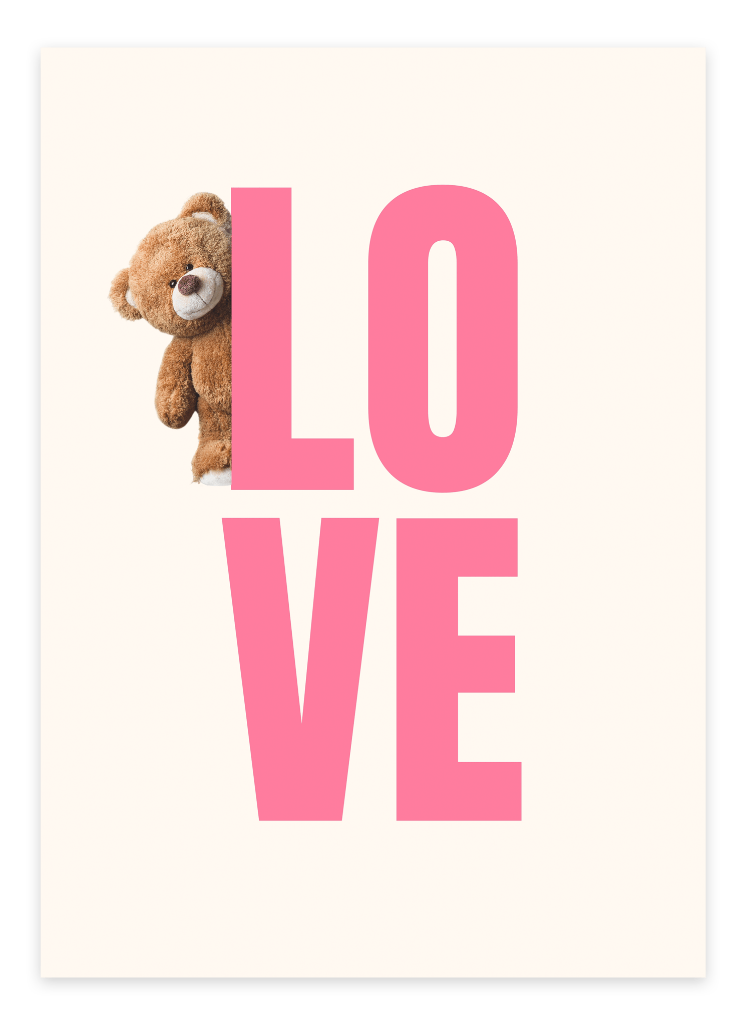 Add a cute and stylish touch to your home with Teddy Love - Pink Poster . This pink poster combines a modern and charming teddy bear motif with a soft, elegant color choice, creating a warm and cozy atmosphere in the room.