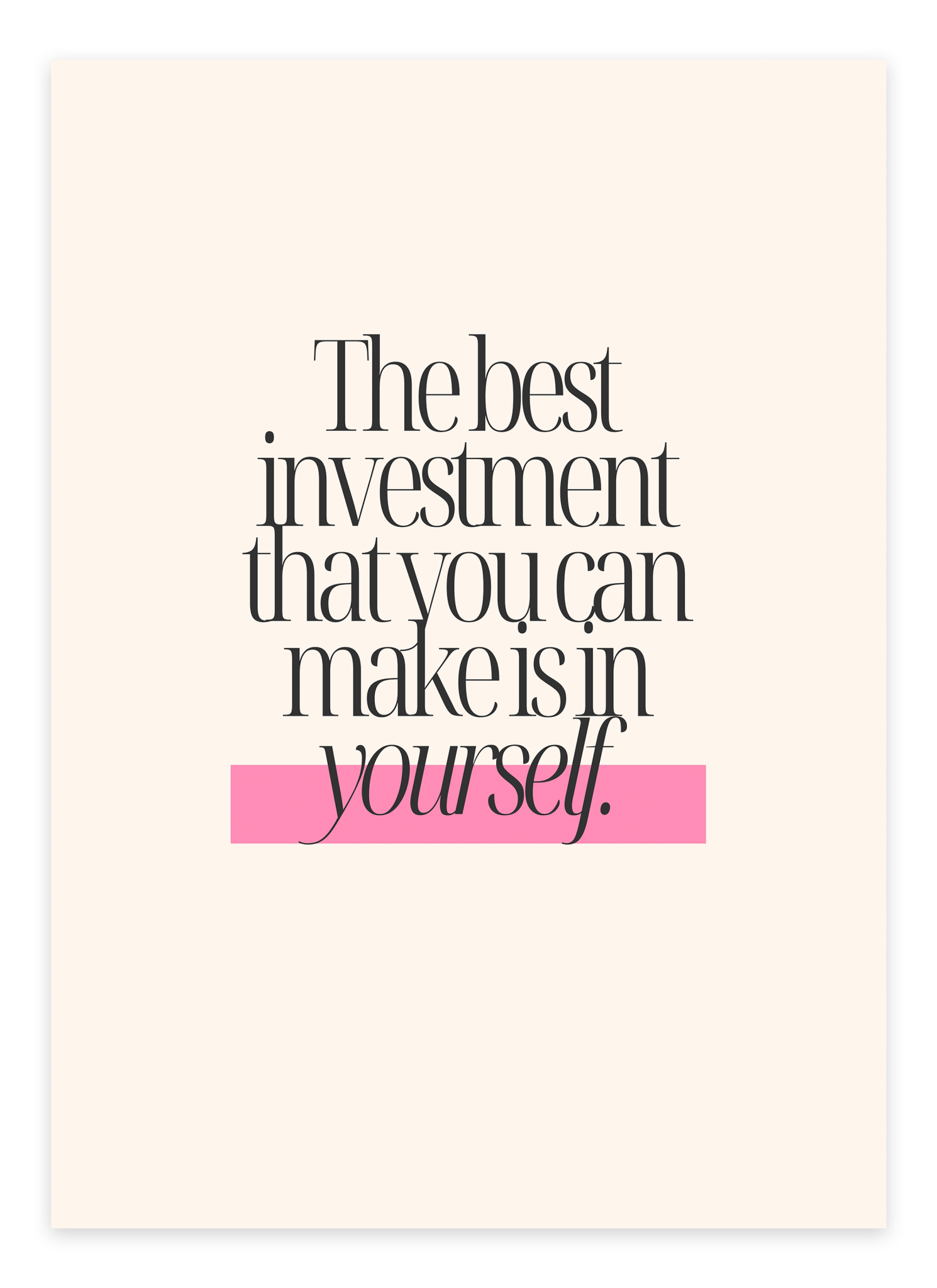 Elevate your decor with an inspiring quote poster that reminds you of the importance of self-development and investment in yourself. "The best investment you can make is in yourself" is a powerful message that creates motivation and positive energy in everyday life.