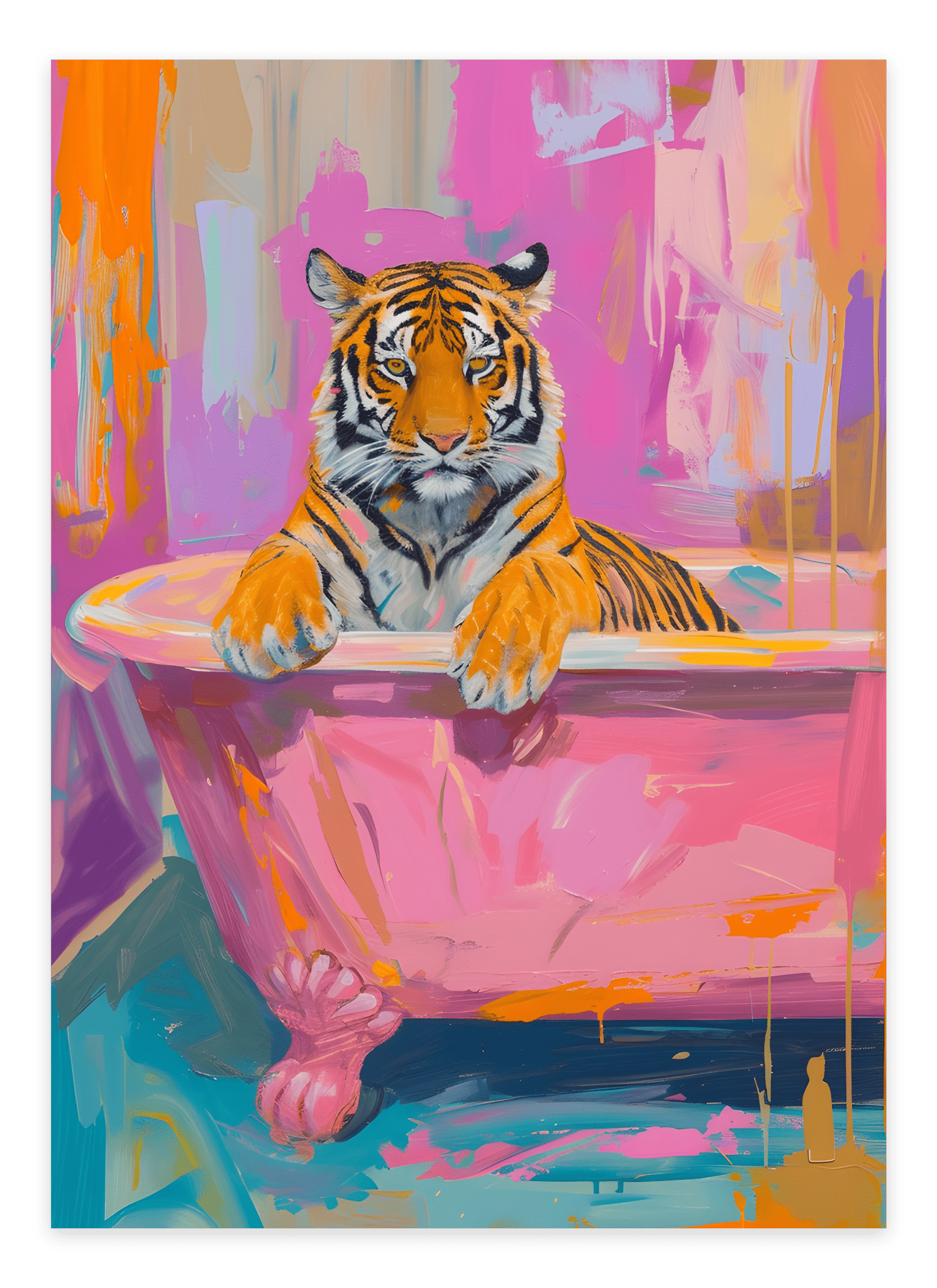 Make your interior more fun with Tiger In Bath - Pink Poster . This pink poster combines a playful motif of a tiger in a bathtub with a stylish and modern design that adds character and charm to your home.