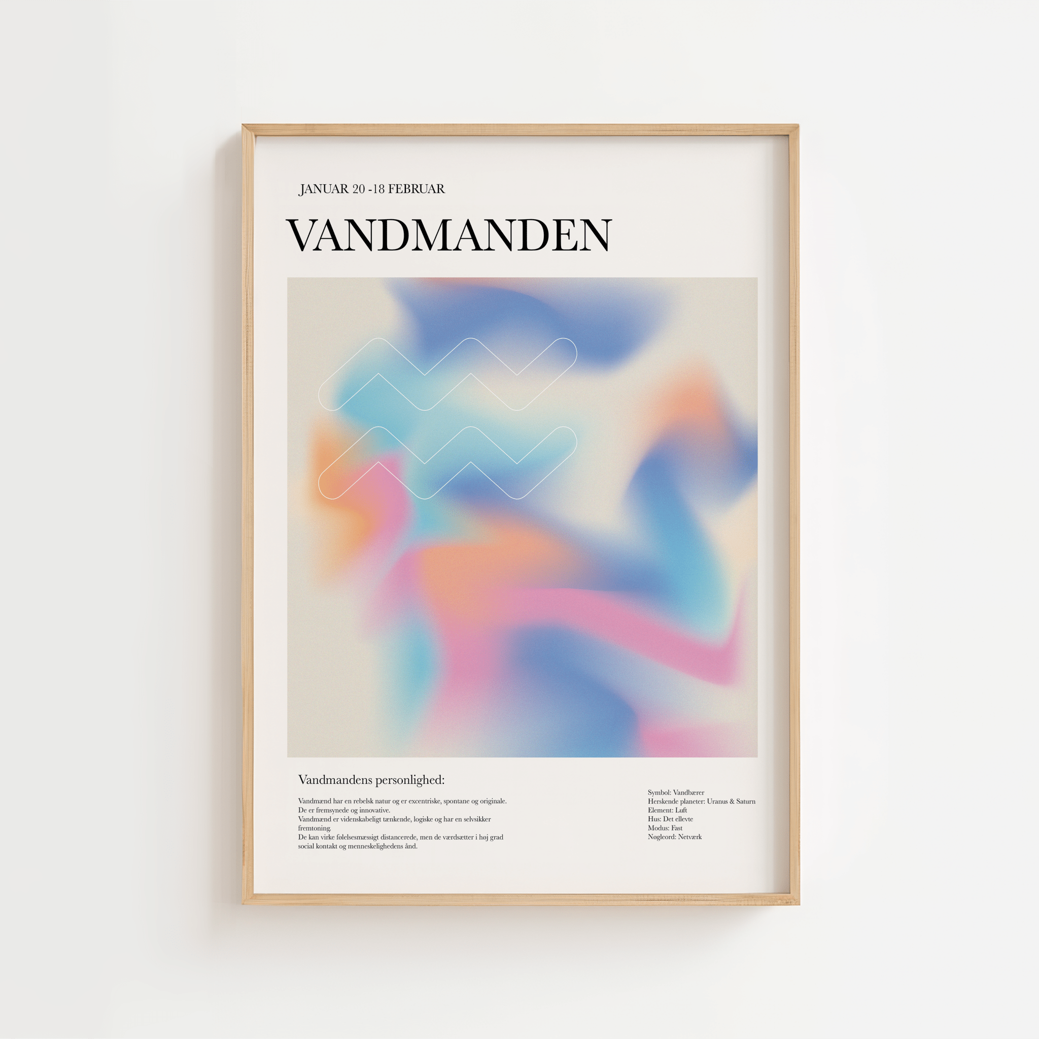 Are you or someone you love born under the sign of Aquarius? Then this colorful zodiac sign poster is an obvious choice. Aquarius is original, independent and often thinks differently - and this poster captures that free and creative energy.