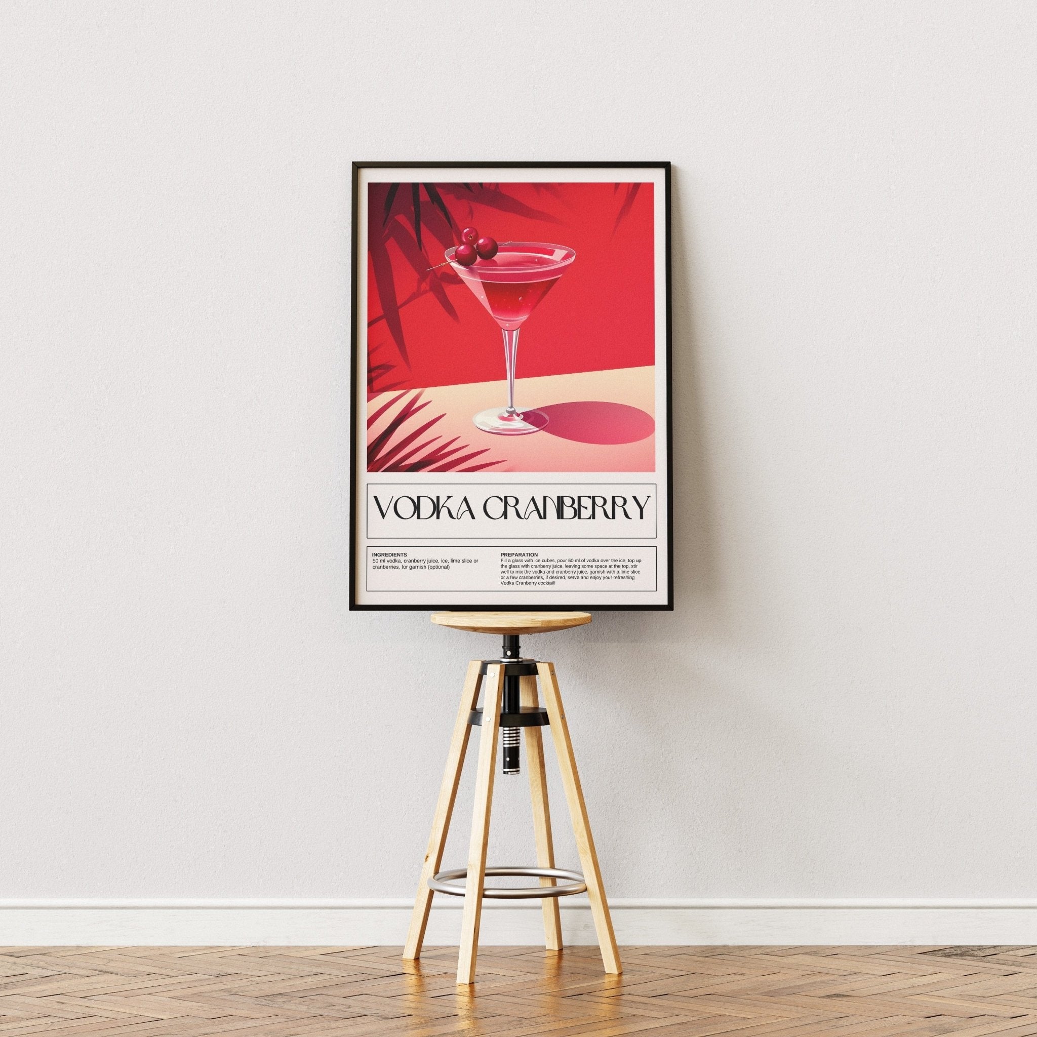 Bring a fresh and colorful cocktail vibe into your home with our Vodka Cranberry poster. With its deep red hues, palm tree shades and elegant glass design, it's not just a tribute to a classic drink - it also acts as a stylish eye-catcher. Perfect for those who love vibrant details and want to create a playful yet sophisticated atmosphere in your kitchen, home bar or living room. Printed on quality paper and available in several sizes.