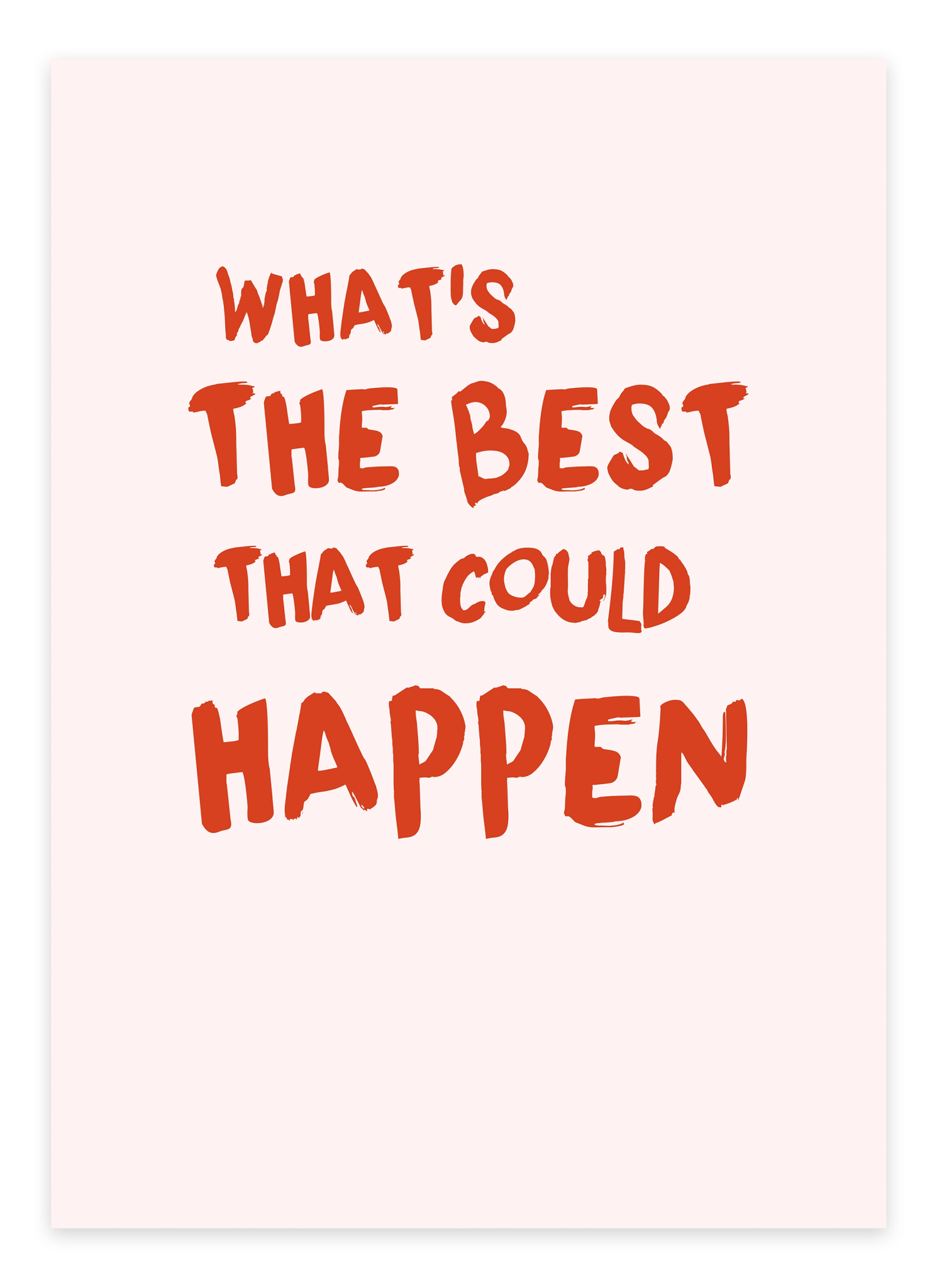 The poster is ideal for the living room, bedroom or as part of an inspiring picture wall. Printed on quality material , What's the Best That Could Happen - Pink Poster ensures sharp details and a modern look.