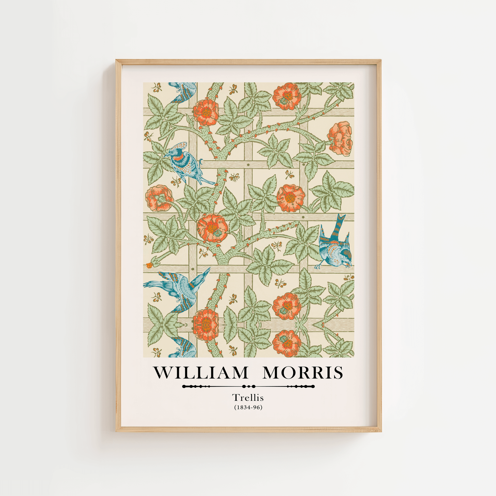 Bring the beauty of nature into your home with William Morris' "Trellis" poster. This beautifully detailed design weaves elegance and tradition together, creating an atmosphere of calm and harmony.